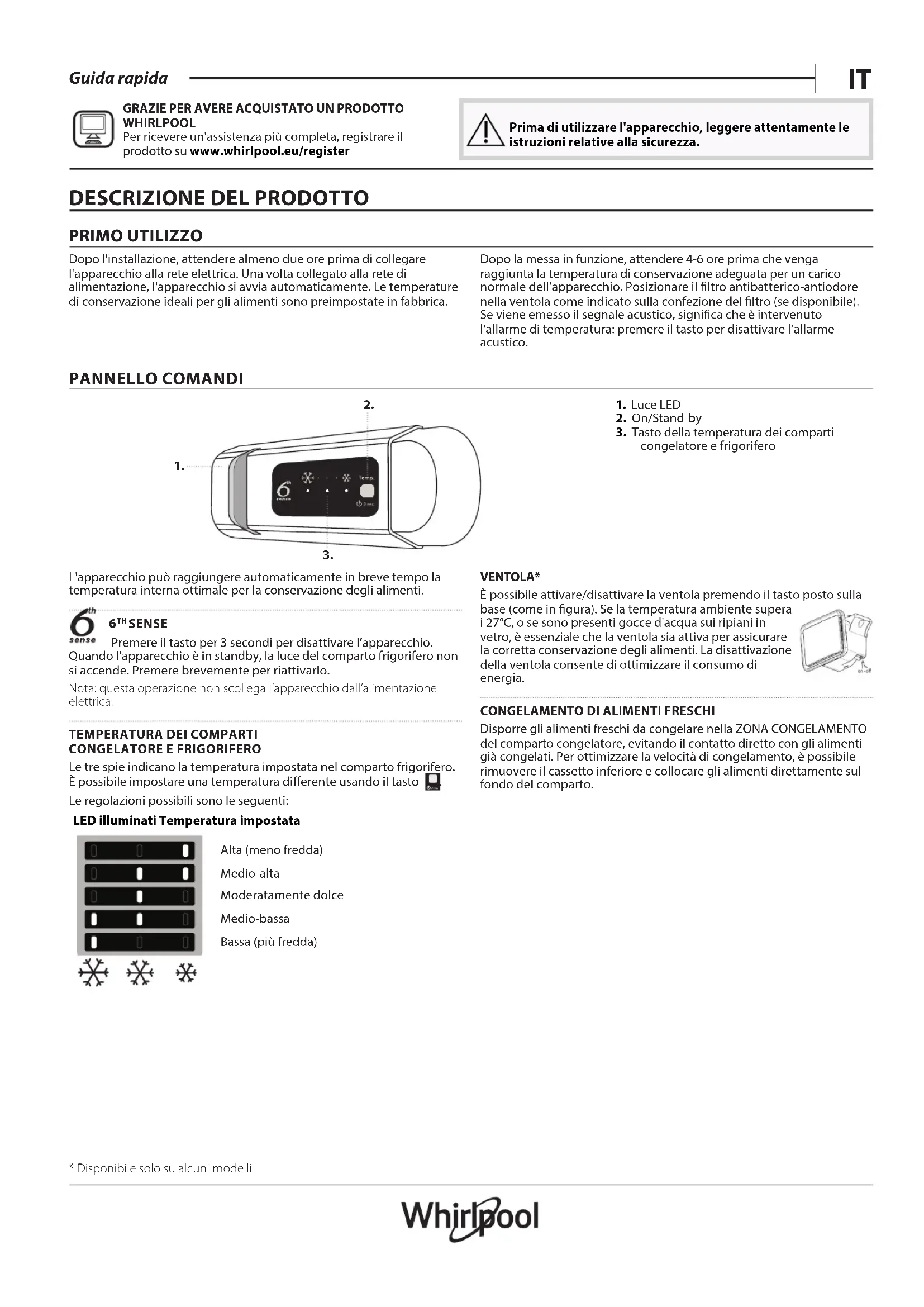 WHIRLPOOL Per ricevere un'assistenza più completa, registrare il prodotto su www . whirlpool . eu / register Prima di utilizzare l'apparecchio, leggere attentamente le istruzioni relative alla sicurezza.