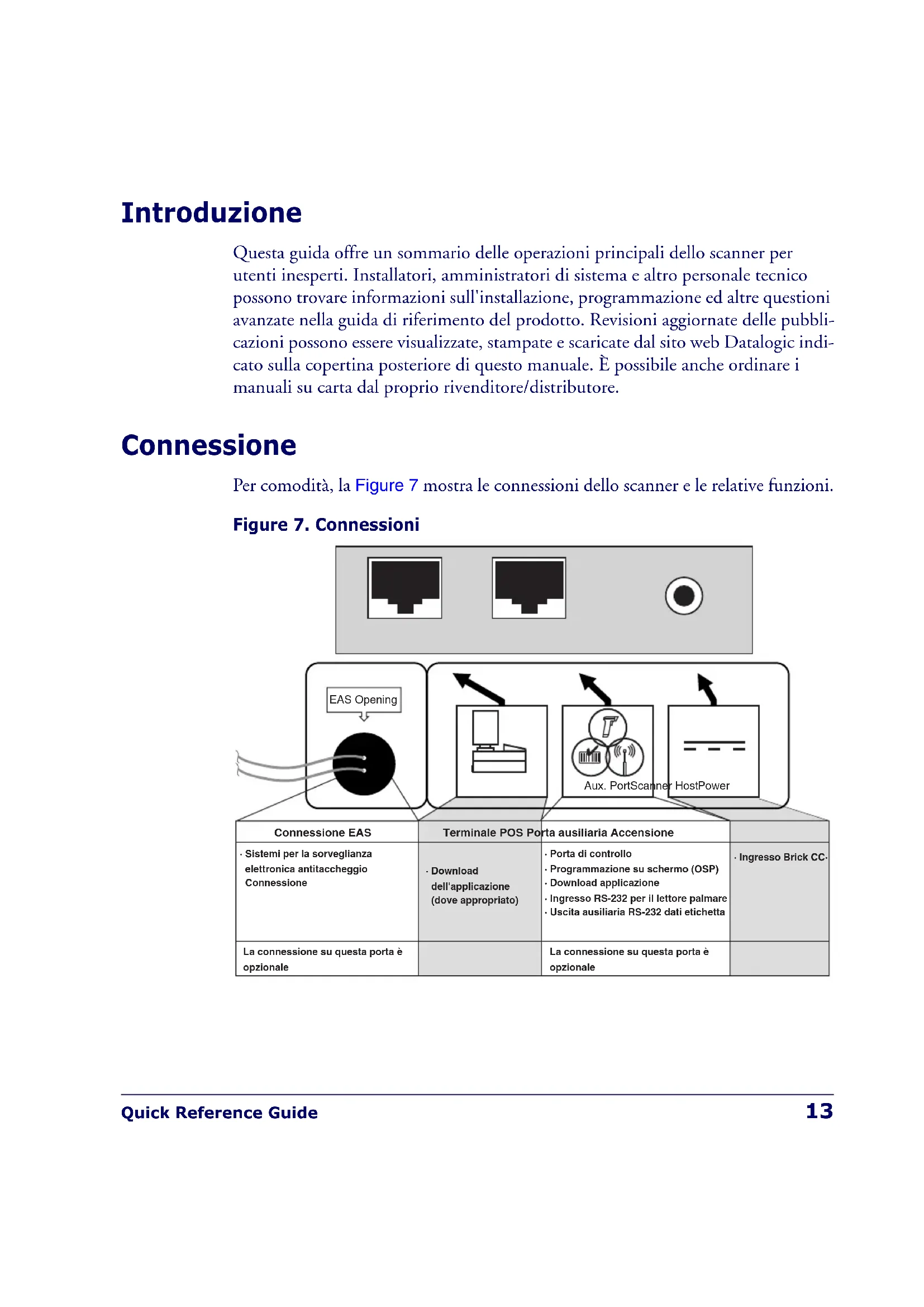 Questa guida offre un sommario delle operazioni principali dello scanner per utenti inesperti. Installatori, amministratori di sistema e altri personale tecnico possono trovare informazioni sull'installazione, programmazione ed altre questioni avanzate nella guida di riferimento del prodotto. Revisioni aggiornate delle pubblicazioni possono essere visualizzate, stampate e scaricate dal site web Datalogic indicate sulla copertina posteriori di questo manuale. è possibileanche ordinare i manuali su carta dal proprio rivenditore/distributore.