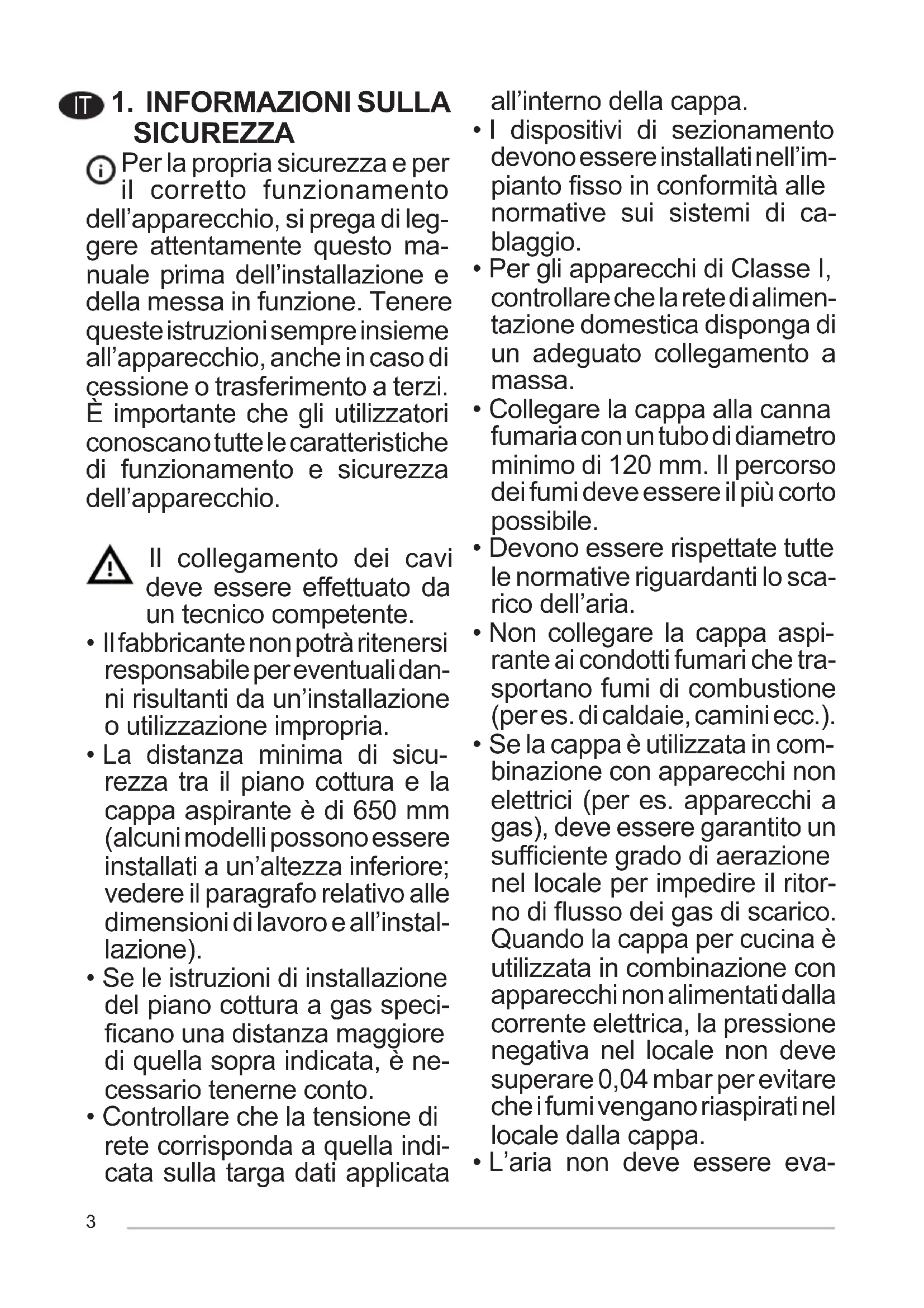 - Non usare mai la cappa per scopi diversi da quelli per cui è stata progettata.