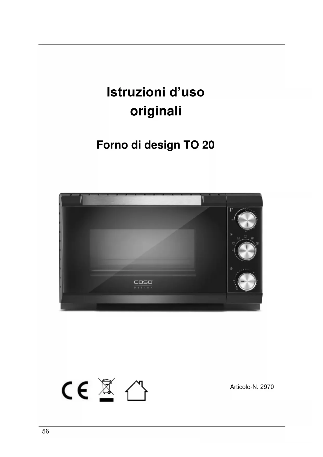 Scarica le istruzioni per il tuo Forno in formato PDF gratuitamente! Trova il tuo manuale TO 20 oven - CASO e riprendi in mano il tuo dispositivo elettronico. In questa pagina sono pubblicati tutti i documenti necessari per l'utilizzo del tuo dispositivo. TO 20 oven del marchio CASO.