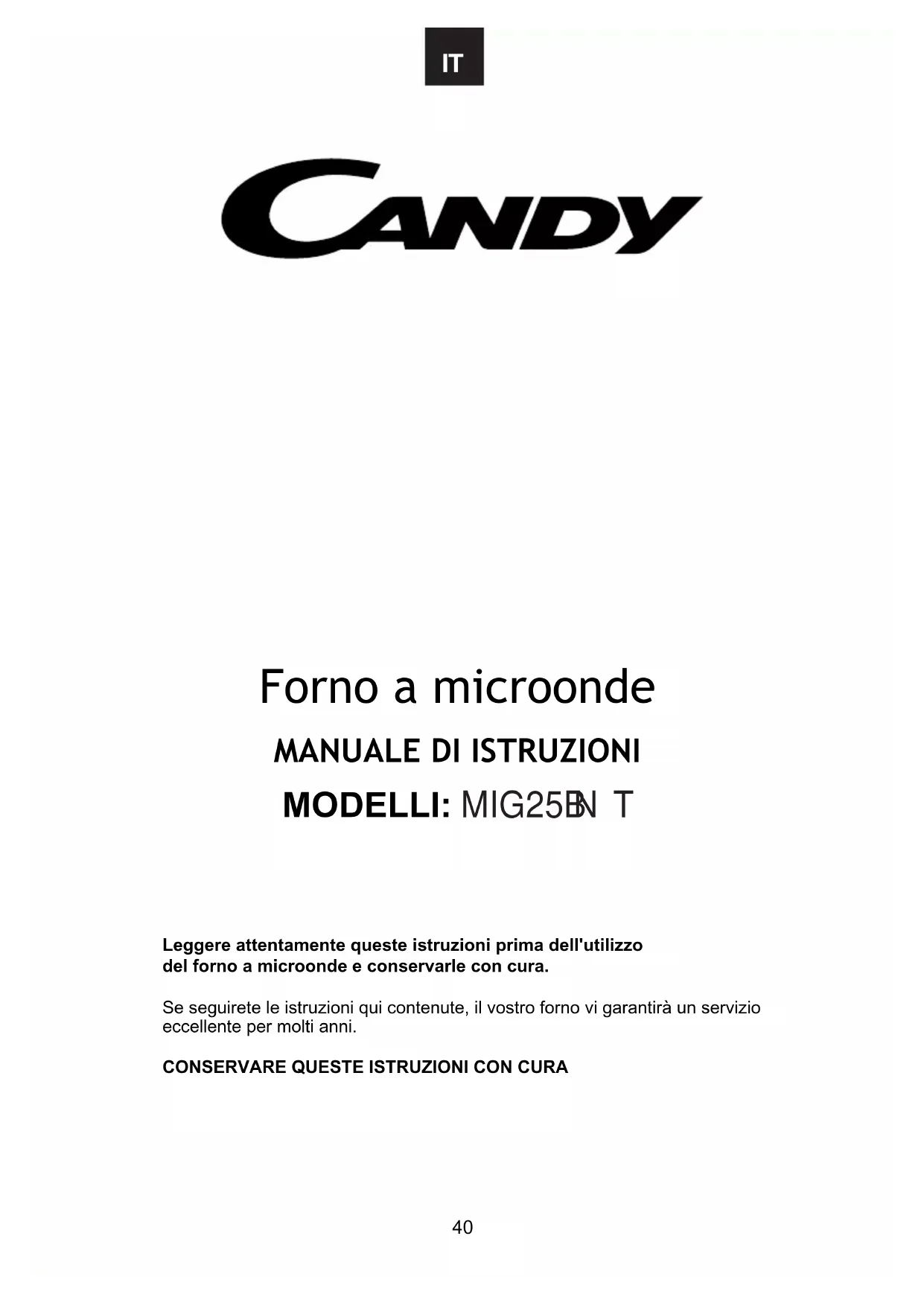 MIG25BNT - Microonde CANDY - Manuale utente e istruzioni gratuiti