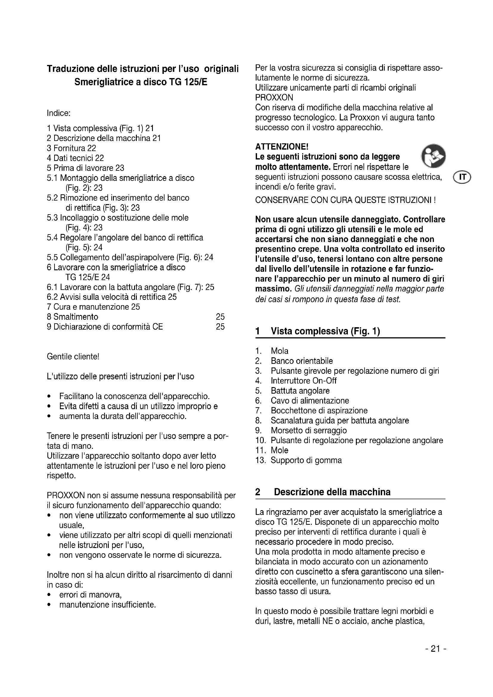 TG 125E - Levigatrice PROXXON - Manuale utente e istruzioni gratuiti