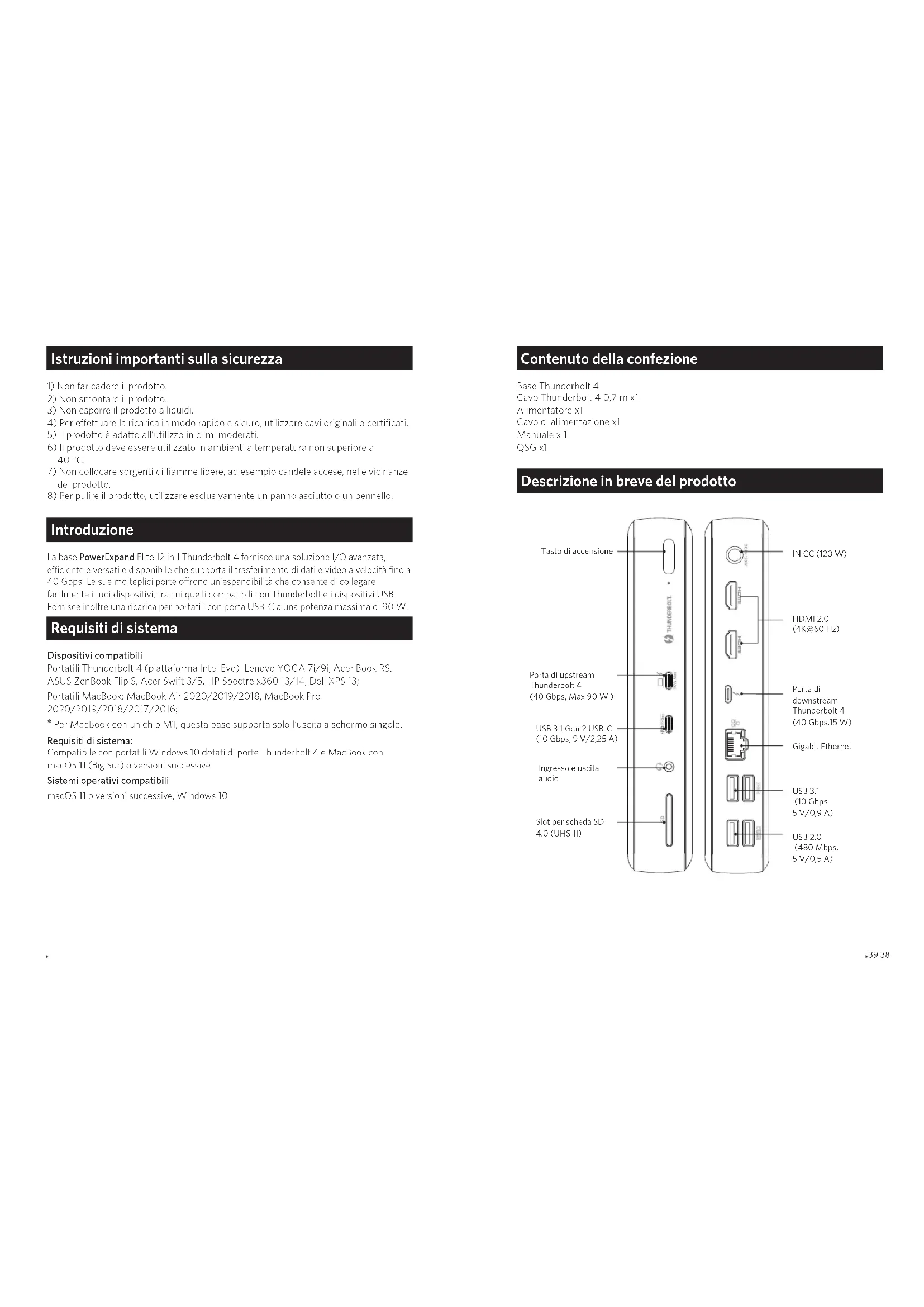 | Caratteristiche tecniche | 12 porte, inclusi Thunderbolt 4, USB-C, USB-A, HDMI, Ethernet, lettore di schede SD |