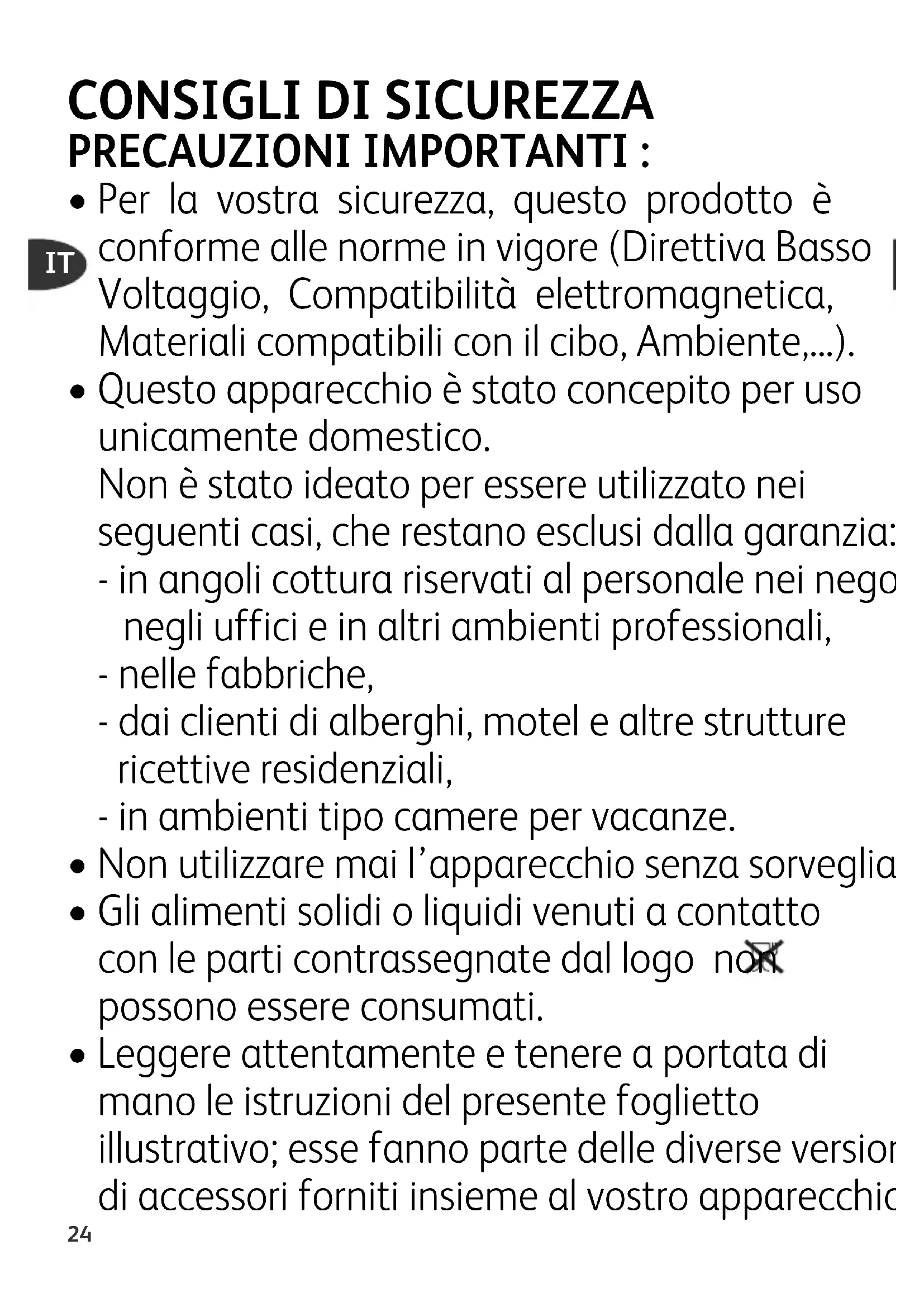 - Gli alimenti solidi o liquidi venuti a contatto con le parti contrassegnate dal logo non possono essere consumati.