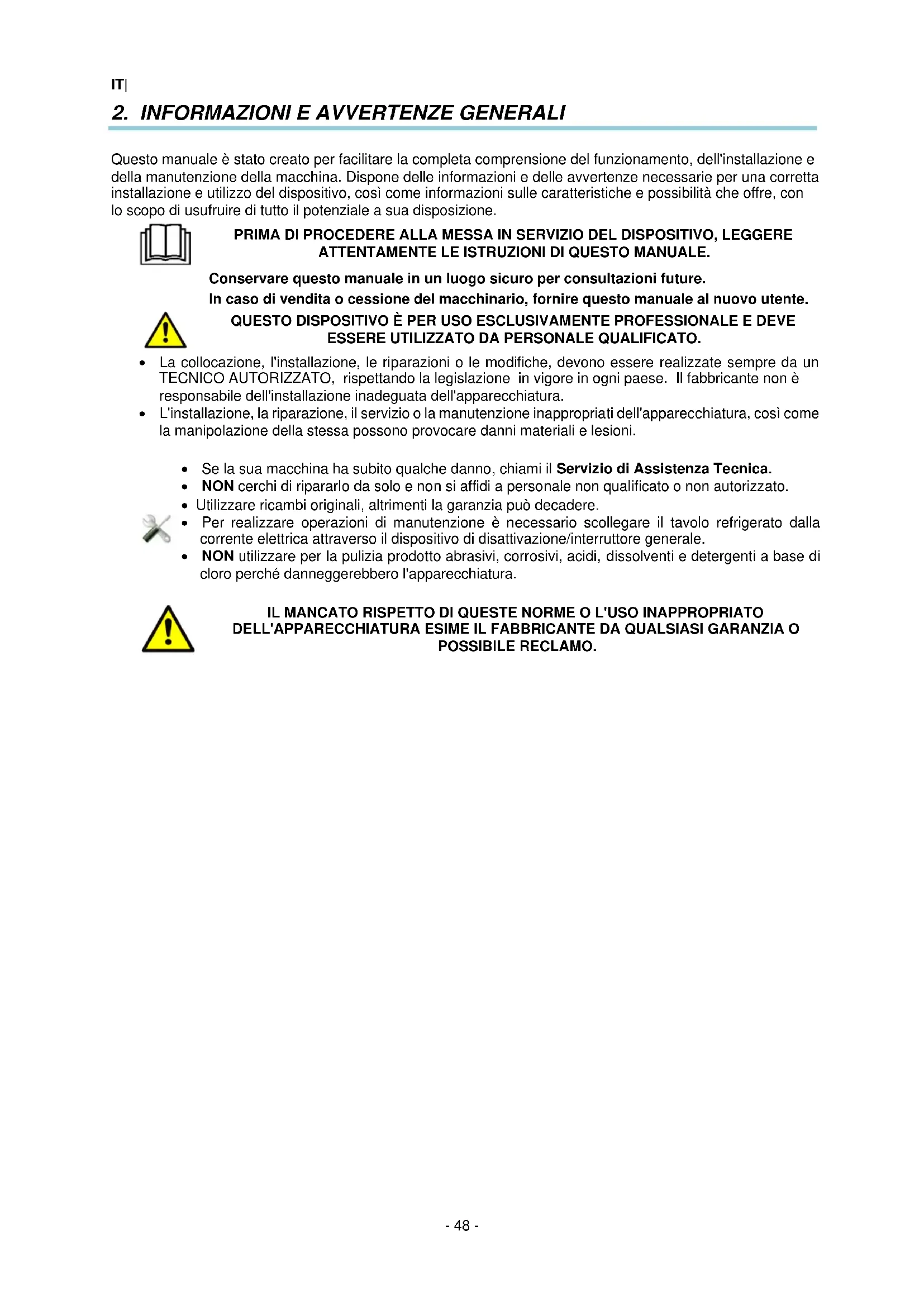 ISTRUZIONI PER L'INSTALLAZIONE, L'USO E LA MANUTENZIONE TAVOLI REFRIGERATI