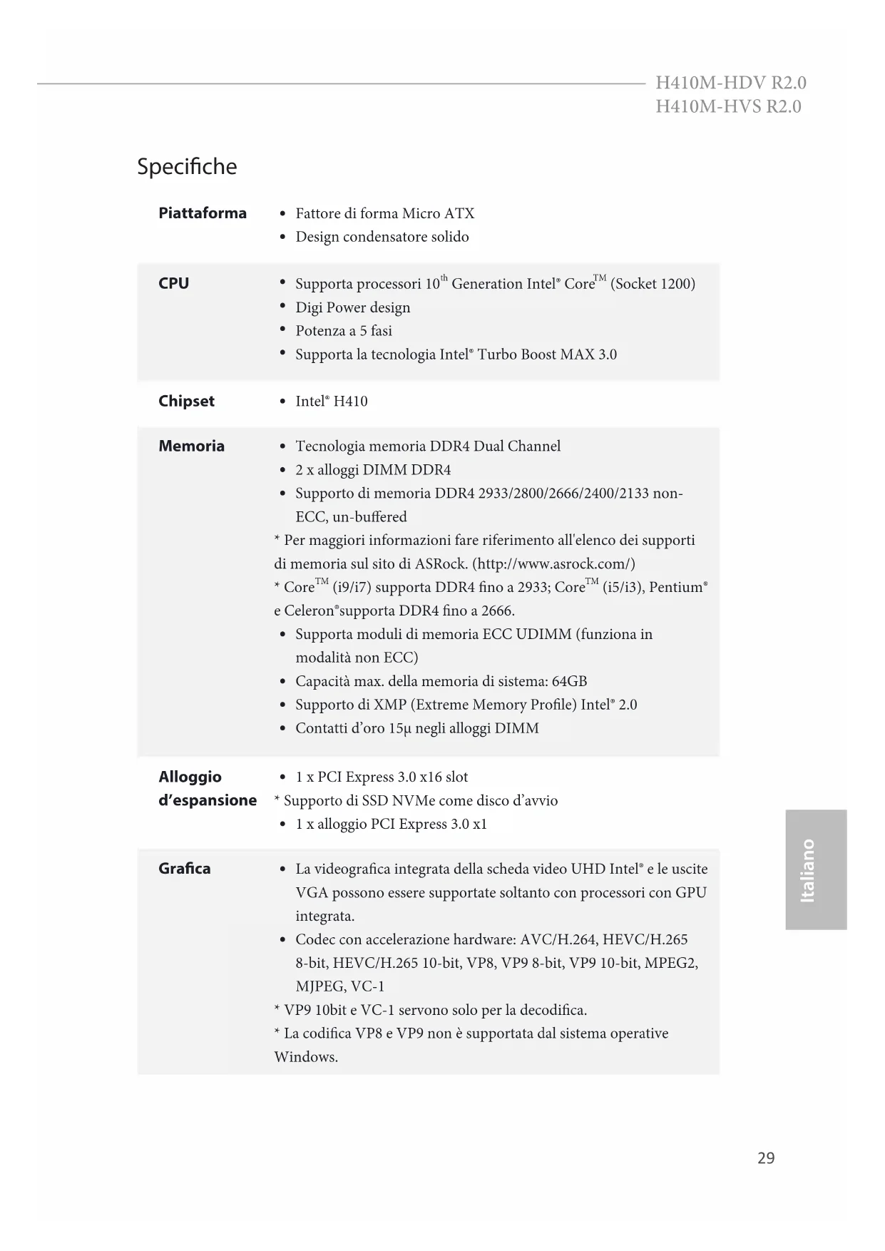 MANUALE UTENTE H410MHVS R2.0 ASROCK