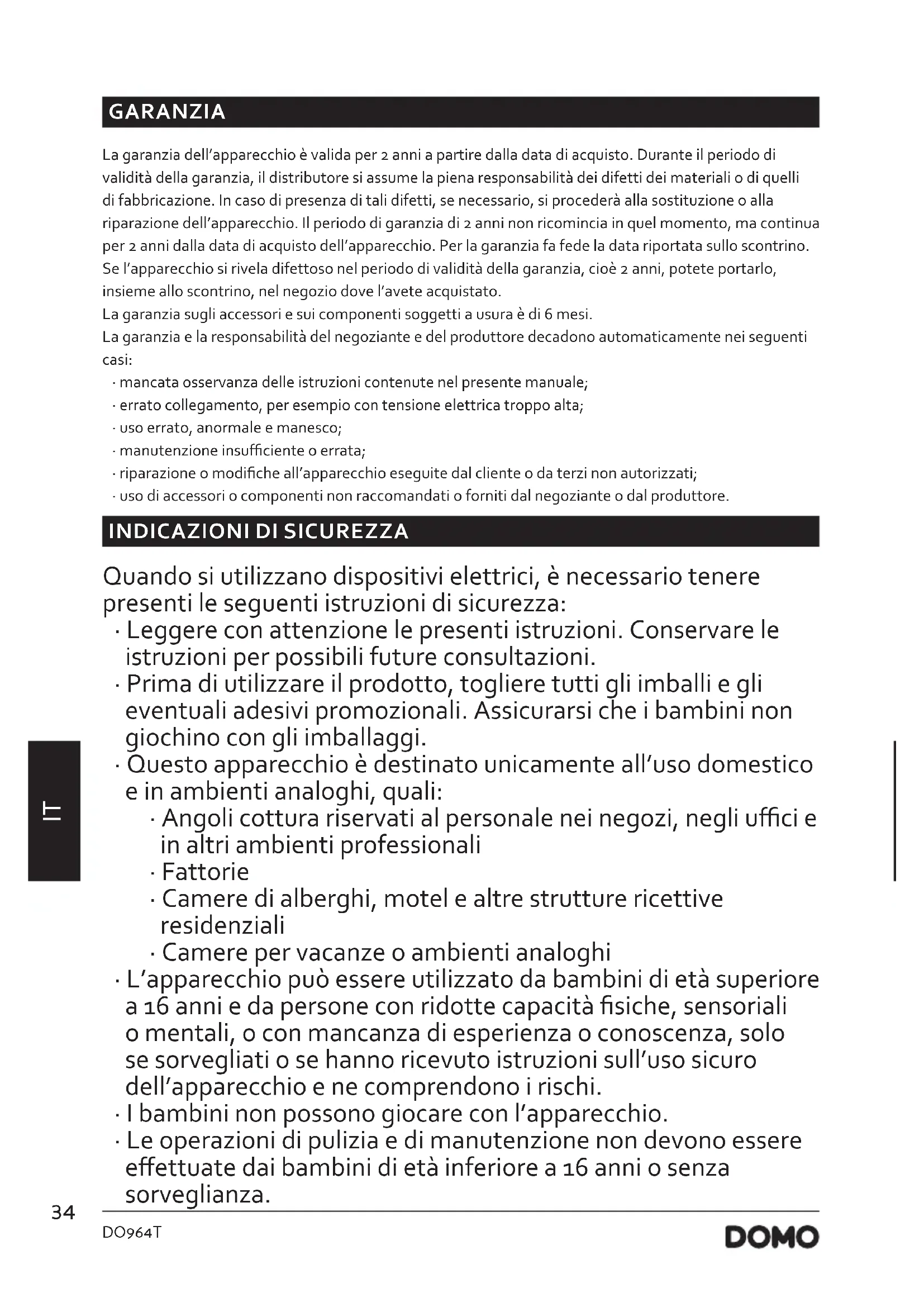 - Non utilizzare l’apparecchio con una presa multipla. Non utilizzare mai l’apparecchio con una prolunga.36 DO964T
