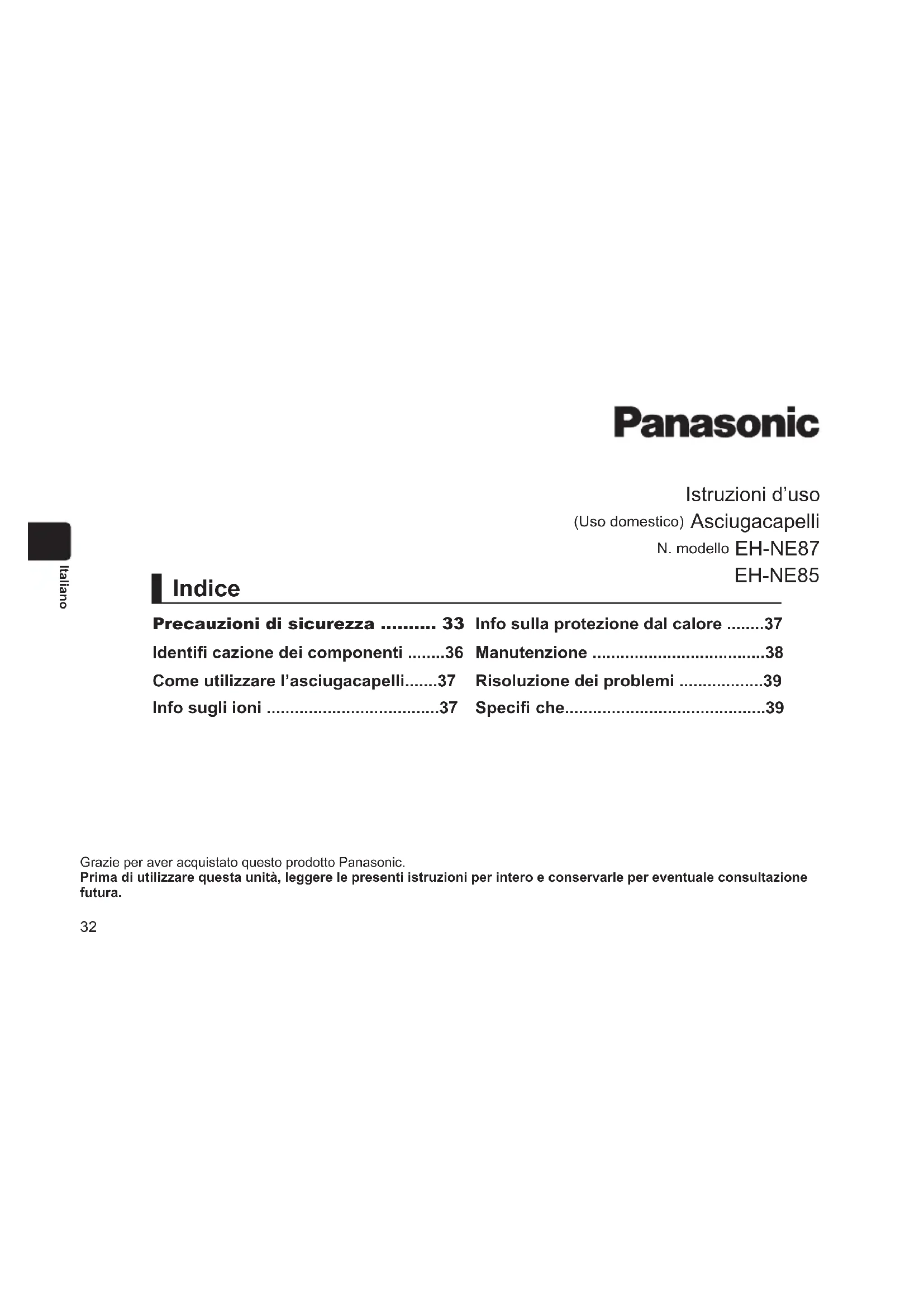 MANUALE UTENTE EHNE85 PANASONIC