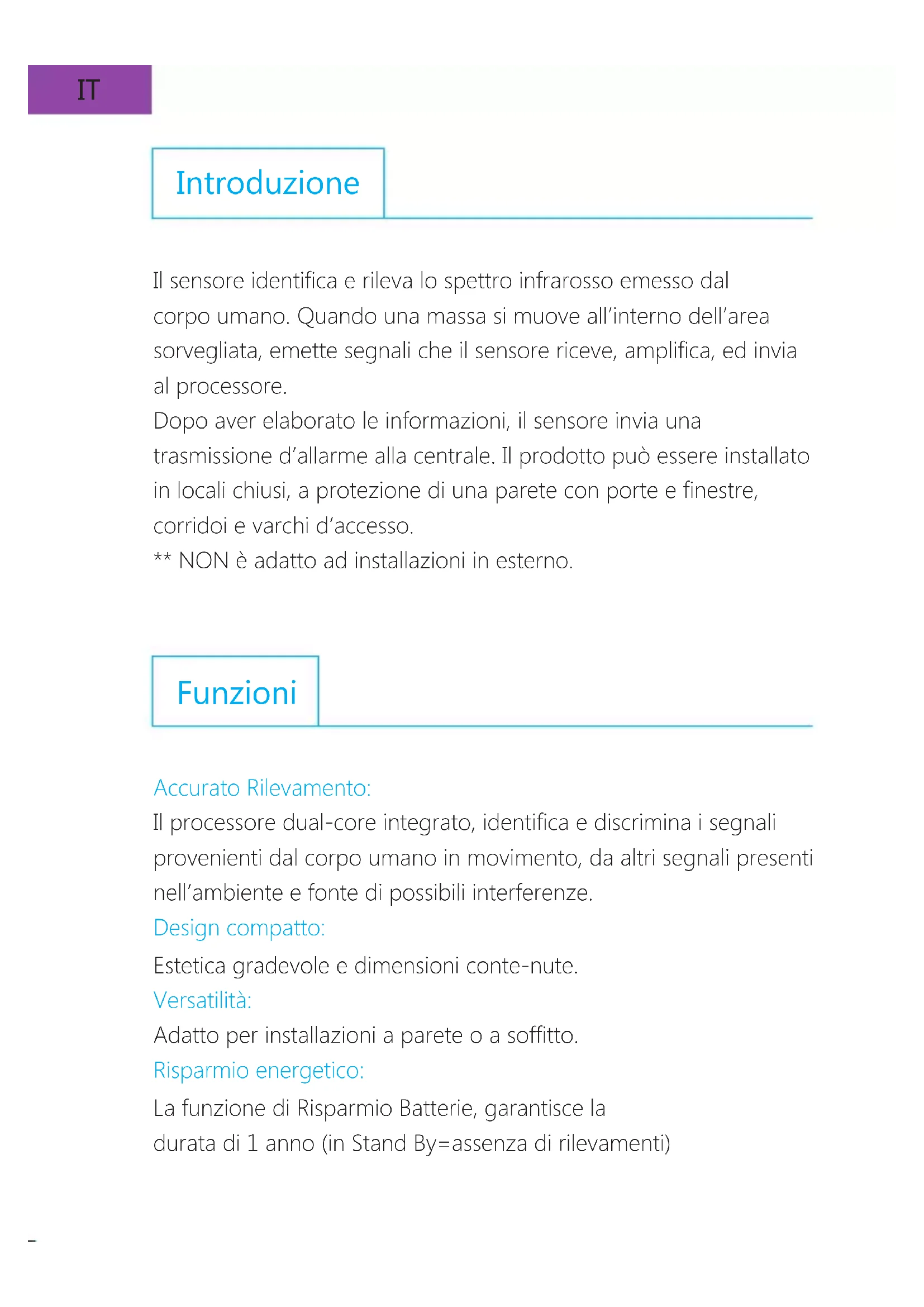 MANUALE UTENTE PIR800 Chuango