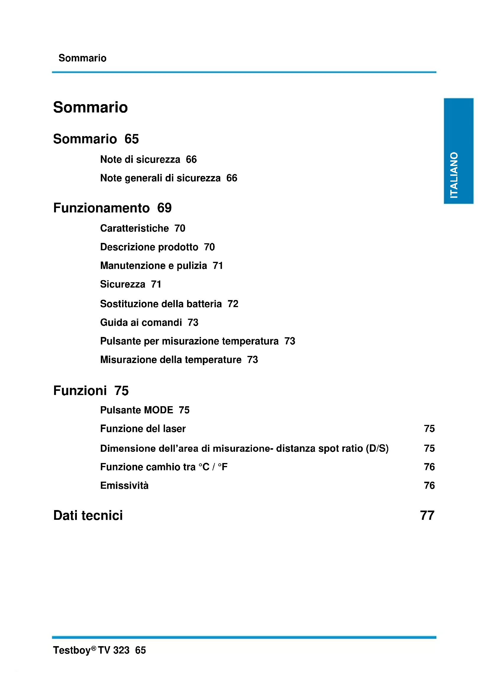 TV 323 - Termometro Testboy - Manuale utente e istruzioni gratuiti
