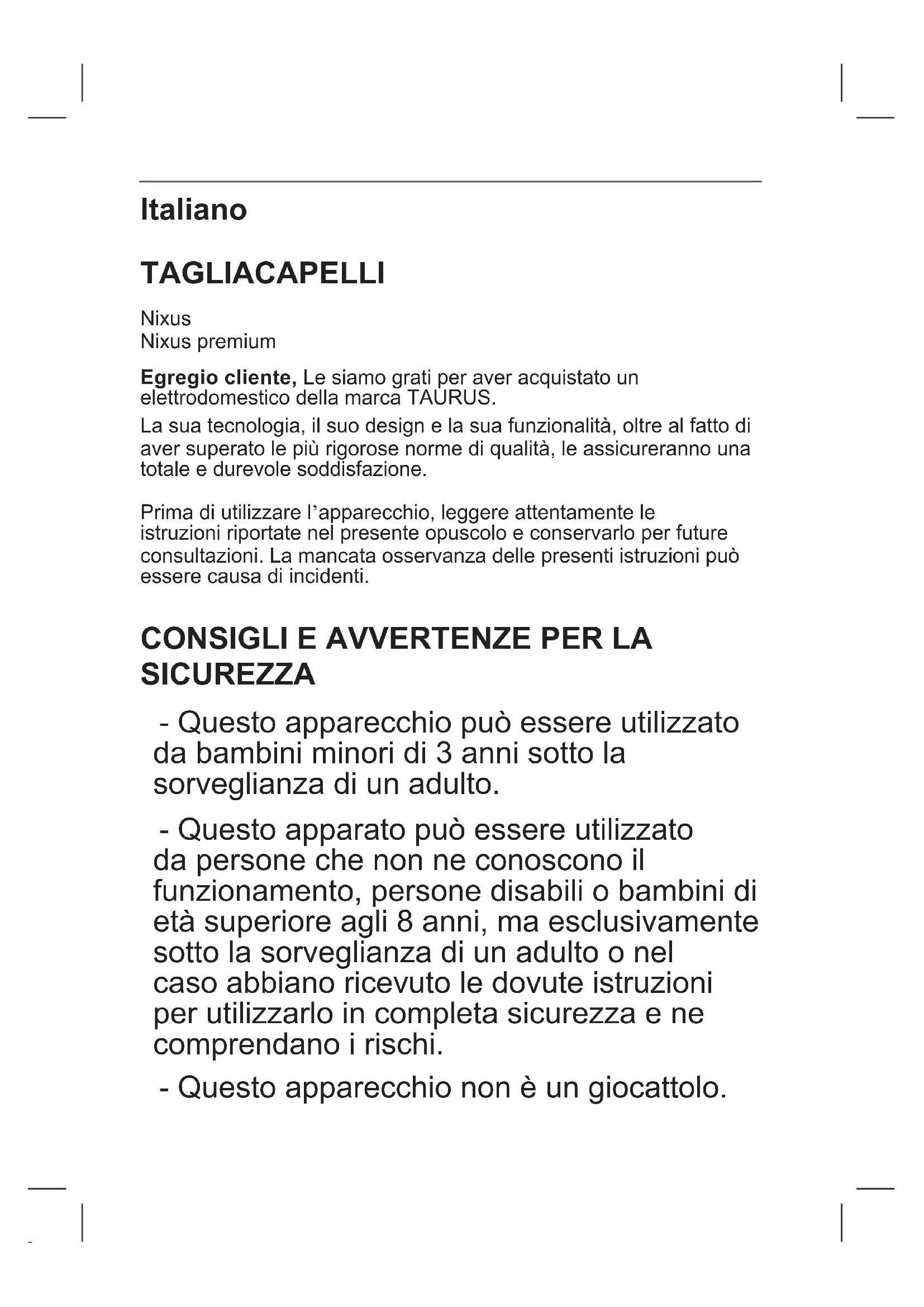 MANUALE UTENTE Nixus Premium TAURUS