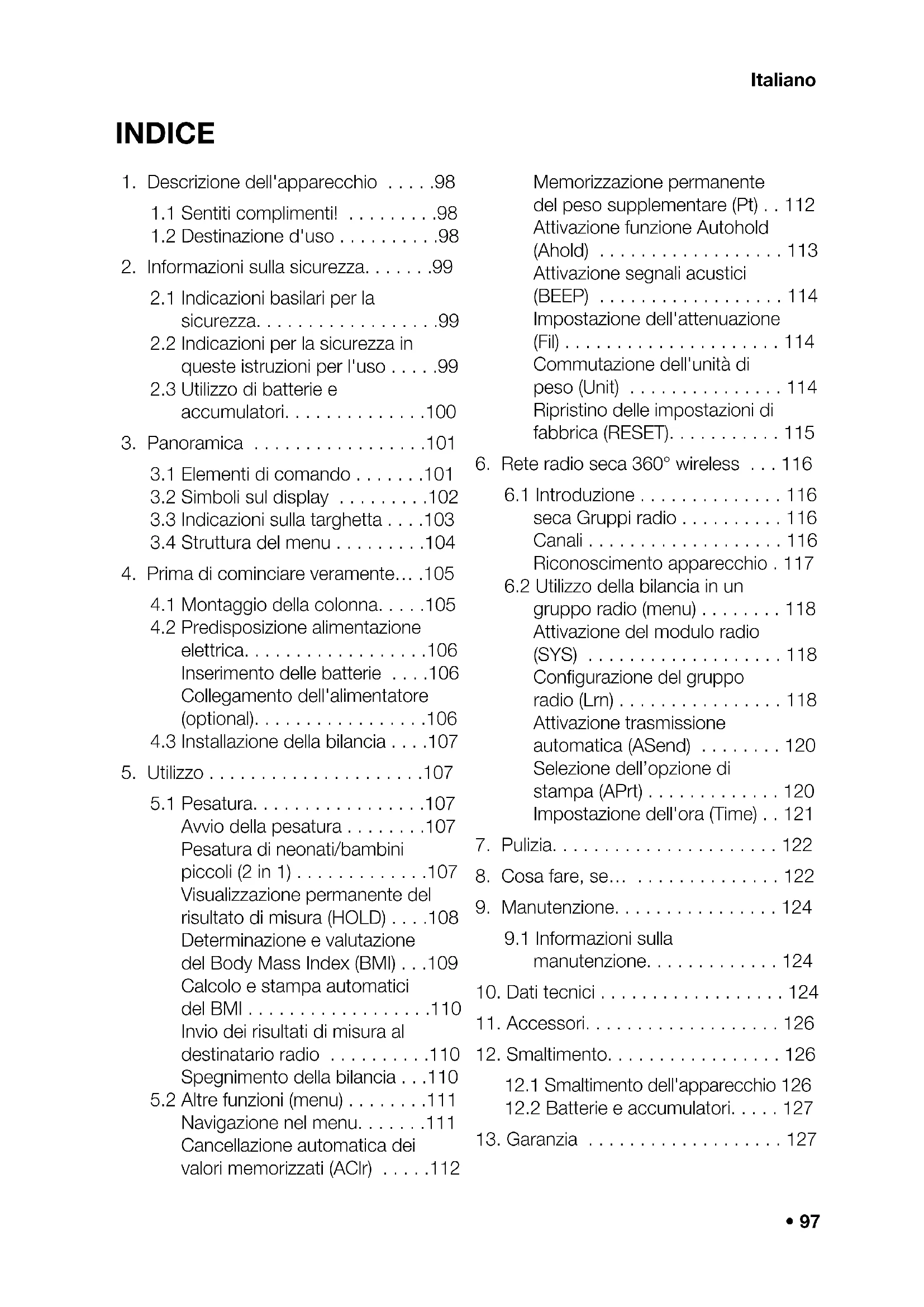 - Descrizione dell'apparecchio 98