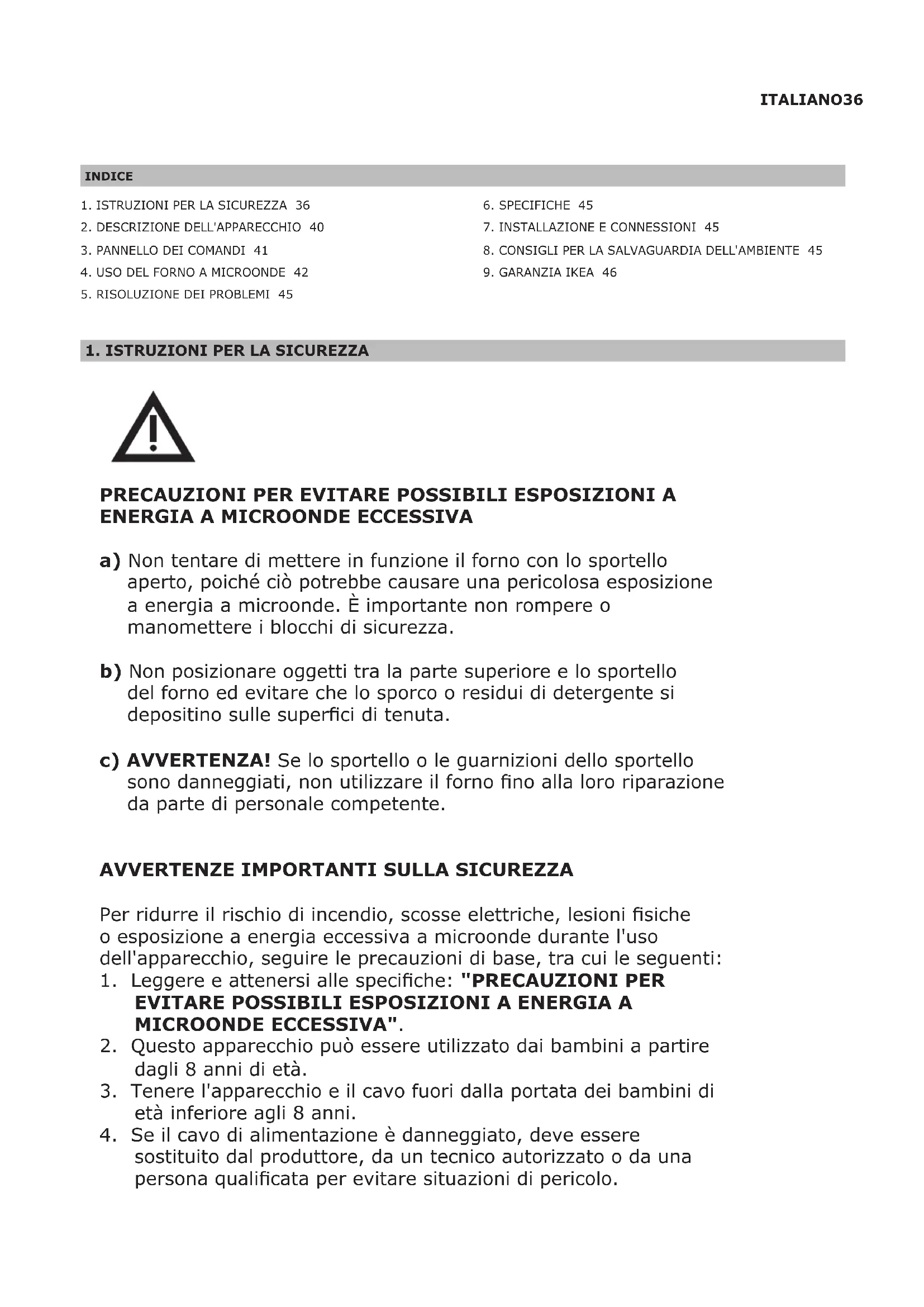 - le informazioni sulla sicurezza contenute nelle Istruzioni per il montaggio e nel Manuale dell’utente. Assistenza POST VENDITA per elettrodomestici IKEA Non esitare a contattare IKEA a: