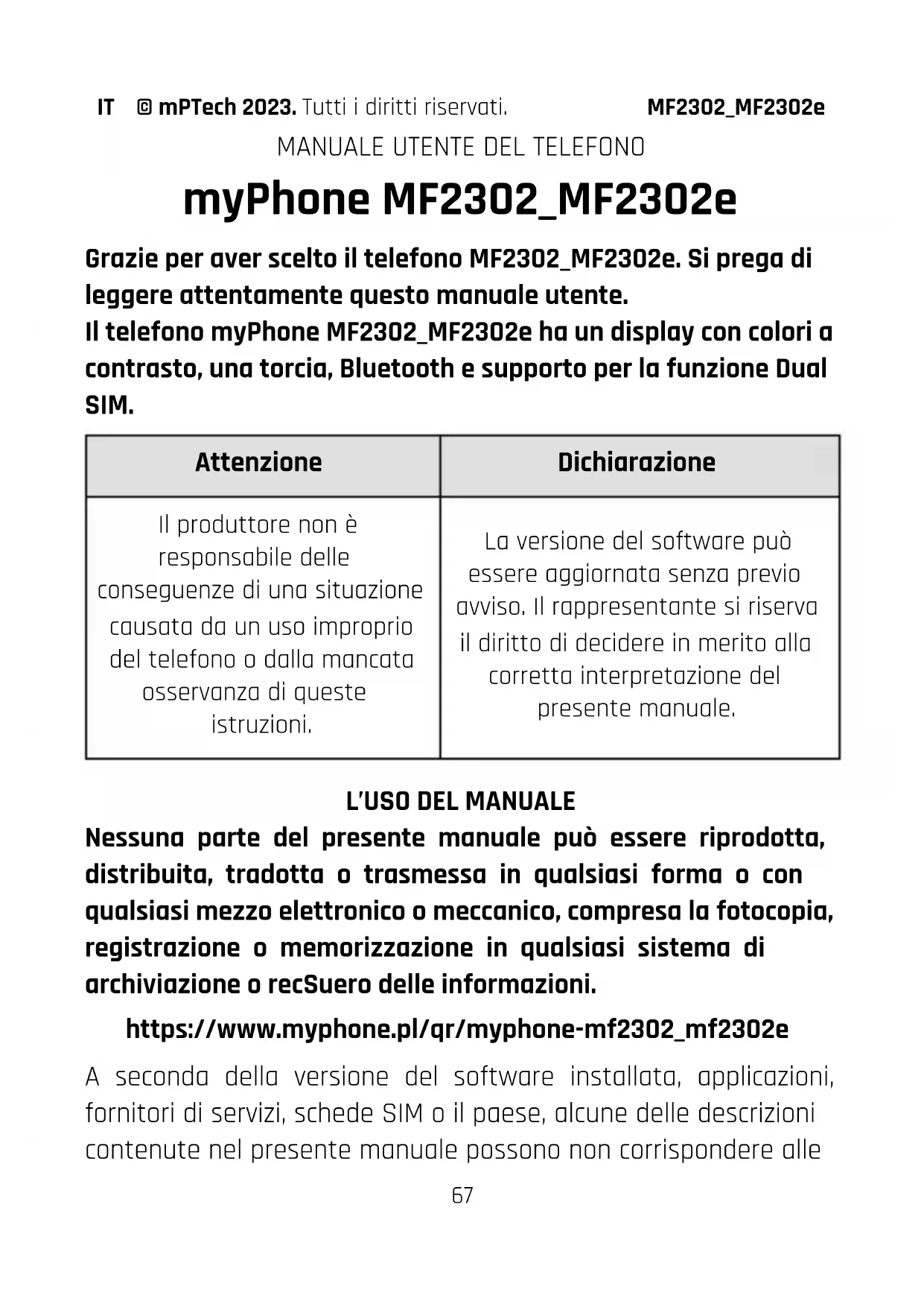 Grazie per aver scelto il Telefono MF2302_MF2302e. Si prega di leggere attendamente quello manuale utente.