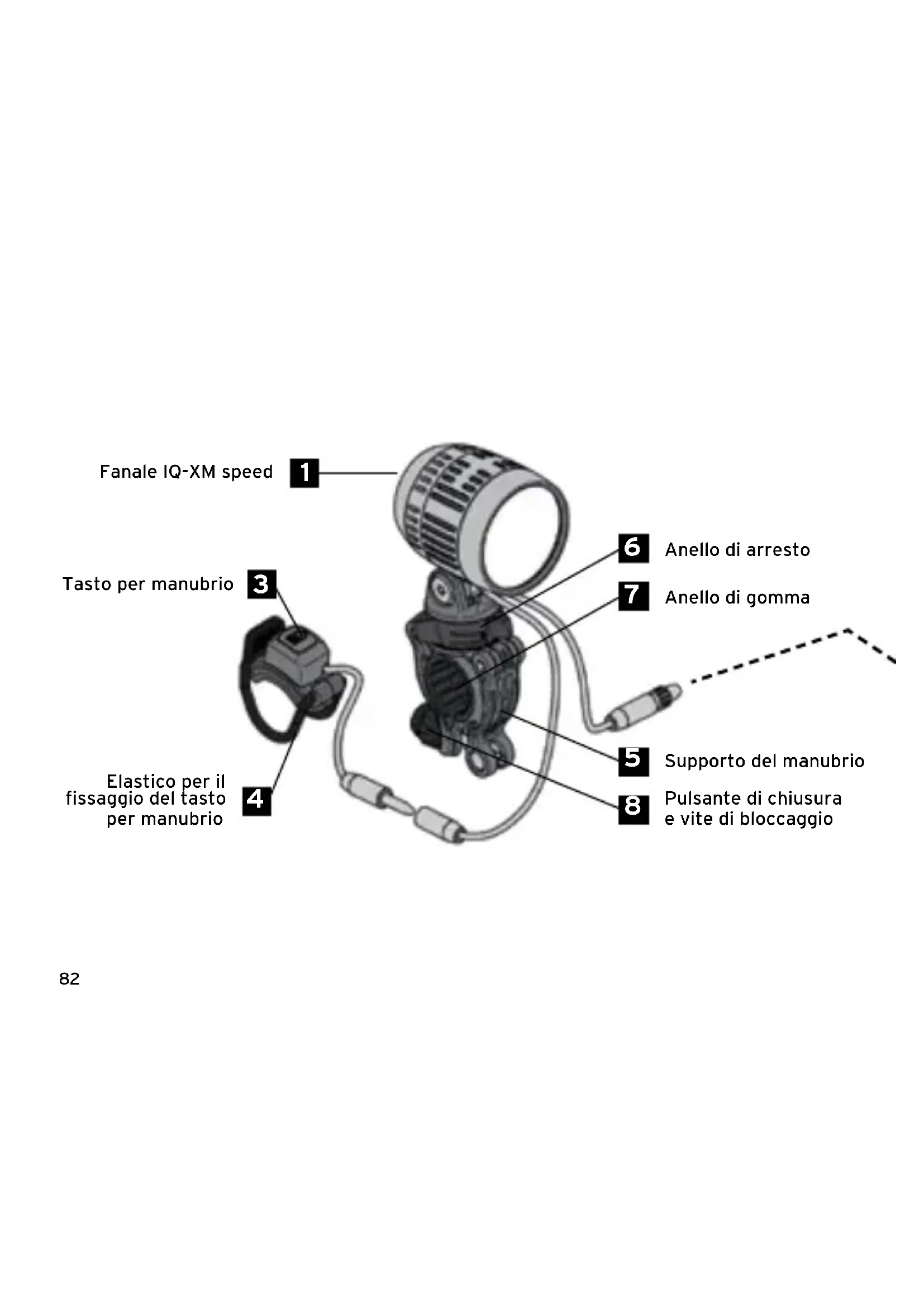IQ-XM speed | Supporto del manubrio con anello di gomma | Tasto per manubrio | Elastico per il fissaggio del tasto per manubrio | Alimentatore USB | Cavo USB per Micro-USB | Cavo con attacco USB per Micro-USB | Pacco batteria 468A | Vite di regolazione + pulsante di chiusura | Cinghia di fissaggio con velcro | Istruzioni per l'uso