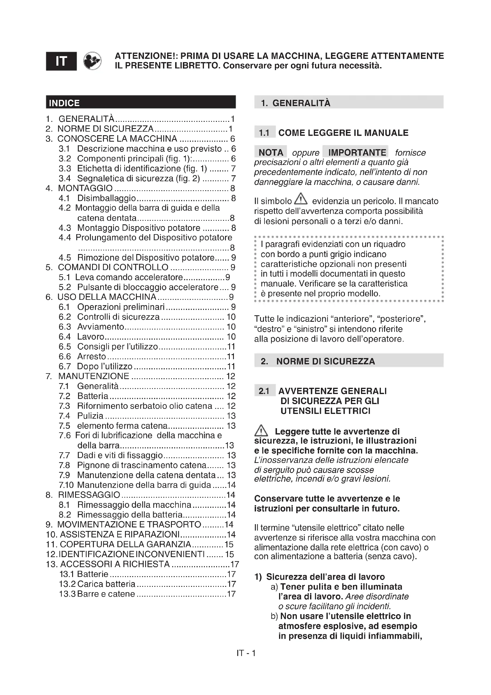 Dato che la scelta, l'applicazione e l'utilizzo della barra e della catena sono atti compiuti dall'utilizzatore nella sua totale autonomia di giudizio, questi se ne assume anche le responsabilità conseguenti per danni di qualsiasi natura derivati da tali atti. In caso di dubbi o scarsa conoscenza della specificità di ciascuna barra o catena, occorre contattare il proprio rivenditore o o un centro di giardinaggio specializzato.