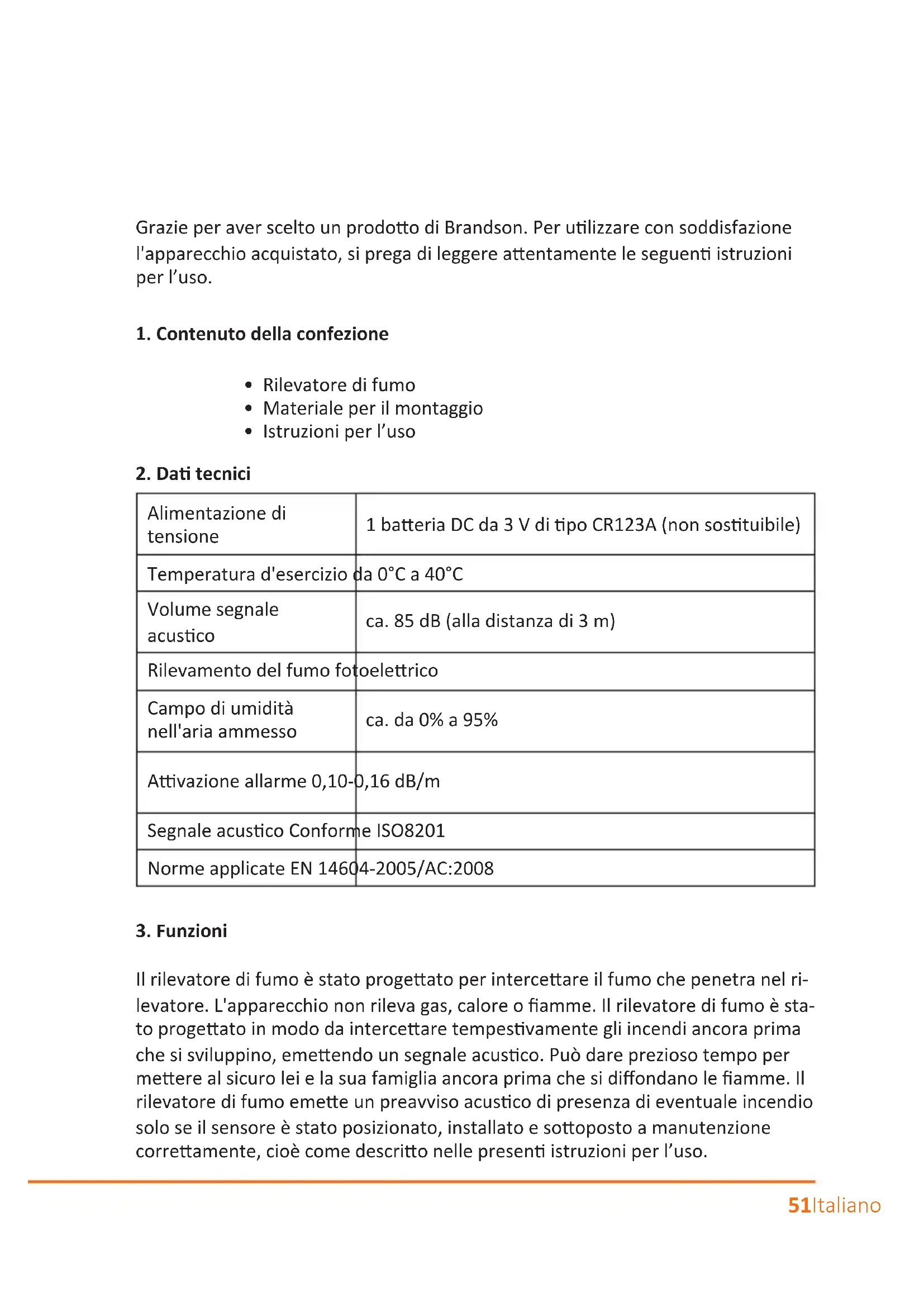 Scarica le istruzioni per il tuo Rilevatore di fumo in formato PDF gratuitamente! Trova il tuo manuale 304973 - Brandson e riprendi in mano il tuo dispositivo elettronico. In questa pagina sono pubblicati tutti i documenti necessari per l'utilizzo del tuo dispositivo. 304973 del marchio Brandson.
