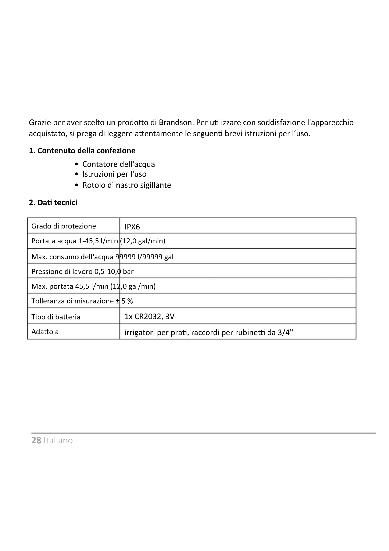 306234 - Contatore dell'acqua Brandson - Manuale utente e istruzioni gratuiti