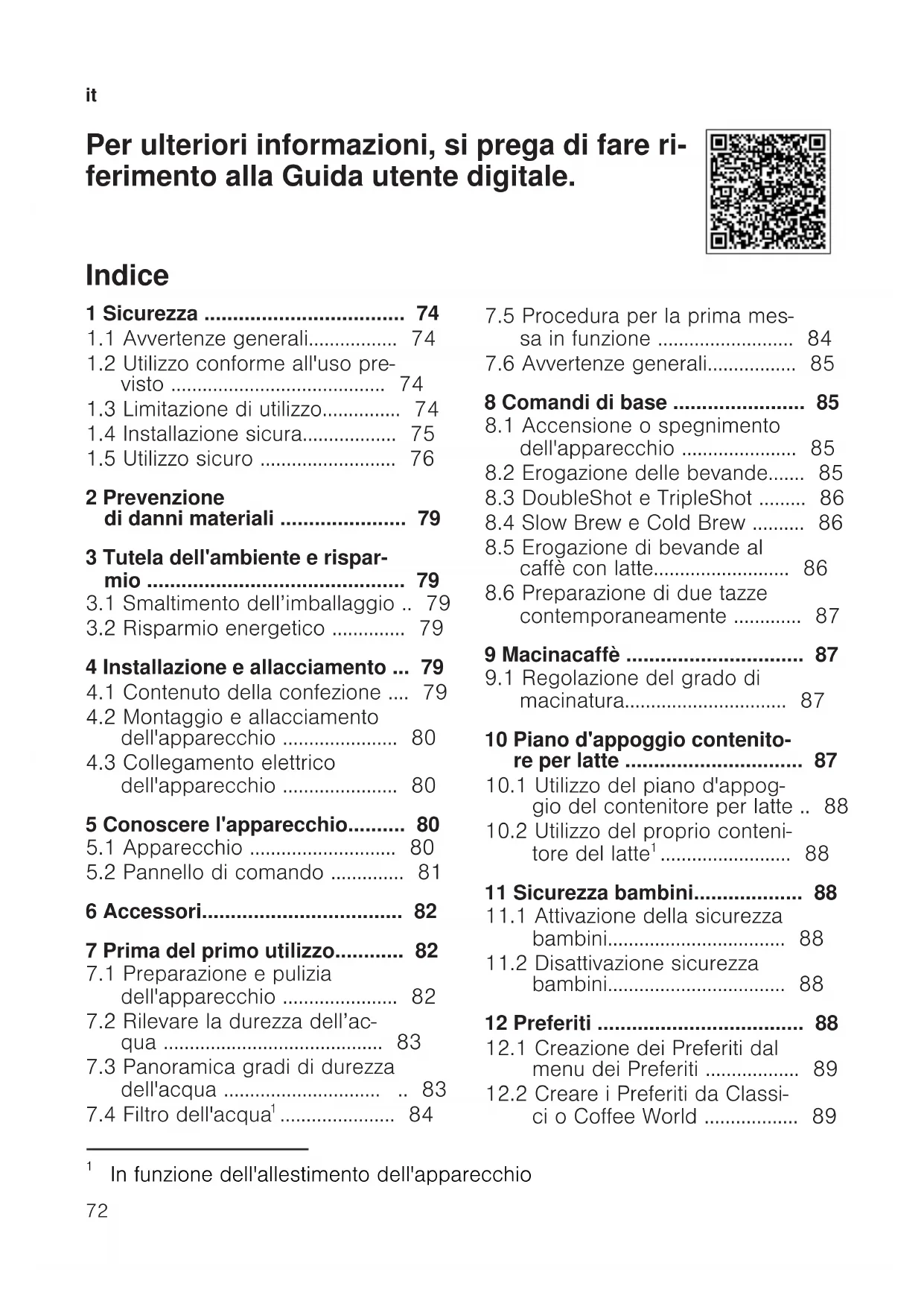 Per ulteriori informazioni, si prega di fare ri- ferimento alla Guida utente digitale. Indice 1 Sicurezza ...................................74