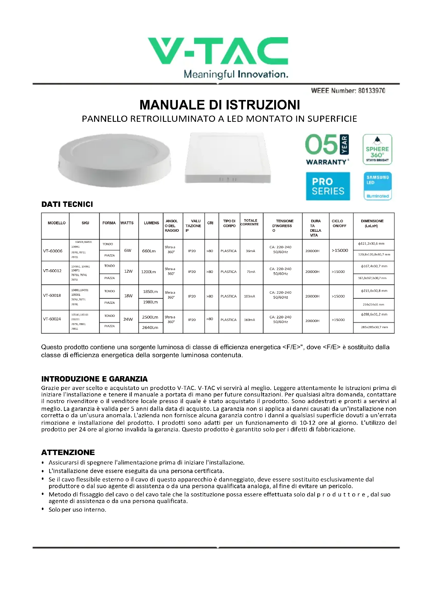 MANUALE UTENTE VT60024 V-TAC