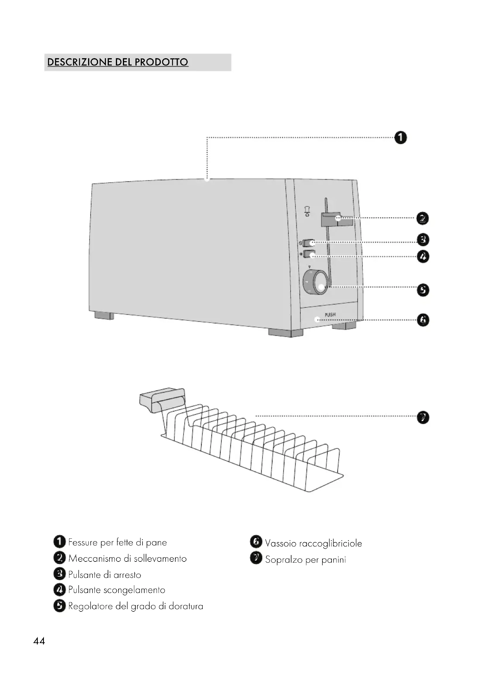 - Le briciole che cadono vengono raccolte nel vassoio raccoglibricile.