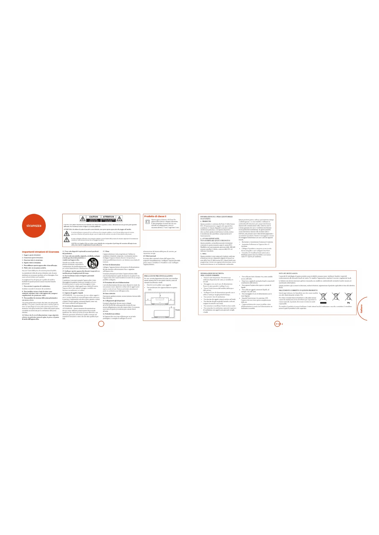 Parete sicurezza Importanti Istruzioni di Sicurezza 1. Leggere queste istruzioni.2. Conservare queste istruzioni.3. Osservare tutte le avvertenze.4. Seguire tutte le istruzioni.5. Non utilizzare questo apparecchio vicino all’acqua.6. Pulire solo con un panno asciutto.Staccare l’unità dalla presa di corrente prima di pulirla.La custodia dovrebbe di norma richiedere solo di essere stronata con un panno morbido, privo di lanugine. Non usare solventi chimici per la pulizia.Sconsigliamo l’uso di spray per la pulizia di mobili o lucidanti in quanto possono causare macchie bianche permanenti.7. Non ostruire le aperture di ventilazione. Installare secondo le istruzioni del produttore.8. Non installare vicino a fonti di calore come radiatori, caloriferi, stufe o altri apparecchi (compresi amplicatori) che producono calore.9. Non annullare la sicurezza della spina polarizzata o con messa a terra. Una spina polarizzata presenta due lame, una più grande dell’altra. Una presa a terra ha due lame e un terzo polo di terra. La lama larga o il terzo polo è previsto per la vostra sicurezza. Se la spina fornita non è adatta alla propria presa, consultate un elettricista per la sostituzione della presa obsoleta.10. Evitare che il cavo di alimentazione venga calpestato o tirato, in particolare presso le spine, le prese e al punto di uscita dall’apparecchio.11. Usare solo dispositivi opzionali/accessori specicati dal produttore.12. Usare solo con carrello, supporto, cavalletto, sostegno o tavola specicati dal produttore o venduti con l’apparecchio.Quando un carrello viene usato, prestare attenzione, muovendo la combinazione di carrello/apparecchio per evitare lesioni dovute a ribaltamento. 13. Scollegare questo apparecchio durante temporali o se inutilizzato per lunghi periodi di tempo.14. Per l’assistenza tecnica rivolgersi a personale qualicato. L’assistenza è necessaria quando l’apparecchio è stato danneggiato in qualsiasi modo, per esempio se il cavo di alimentazione o la spina sono danneggiati, è stato versato del liquido o degli oggetti sono caduti all’interno, l’apparecchio è stato esposto a pioggia o umidità, non funziona normalmente, o è caduto.15. Ingresso di oggetti o liquidiATTENZIONE- Fare attenzione che non cadano oggetti e non si versino liquidi nel corpo dell’apparecchio attraverso le aperture. L’apparecchio non deve essere esposto a schizzi o liquidi. Nessun oggetto contenente liquidi, come vasi, deve essere collocato sull’apparecchio.16. Istruzioni di manutenzioneATTENZIONE- Queste istruzioni di manutenzione devono essere utilizzate esclusivamente da personale qualicato. Per ridurre il rischio di scosse elettriche, non eettuare operazioni all’infuori di quelle contenute nel manuale di istruzioni a meno che non siate qualicati per farlo.17. ClimaL’apparecchiatura è stata progettata per l’utilizzo in condizioni climatiche temperate e in situazioni interne. Scollegare l’apparecchiatura durante i temporali per evitare possibili danni dovuti a un fulmine o uno sbalzo di tensione.18. Fonti di alimentazioneCollegare l’apparecchiatura ad una presa di alimentazione del tipo descritto nelle istruzioni d’uso o segnalato sull’apparecchio.Il metodo principale per isolare l’apparecchiatura dalla rete di alimentazione è quello di rimuovere la spina di rete. L’apparecchio deve essere installato in modo che sia sempre possibile scollegarlo.19. Protezione del cavo di alimentazioneI cavi di alimentazione devono essere disposti in modo che non possano essere calpestati o schiacciati da oggetti posti sopra o contro di essi. Prestare particolare attenzione al punto in cui fuoriescono dall’apparecchio.20. Linee elettrichePosizionare qualsiasi antenna esterna/antenna lontano dalle linee elettriche.21. Collegamenti agli altoparlantiEventuali altoparlanti devono essere collegati all’AVR750/450/380 utilizzando li di classe II (cioè nessun collegamento a terra deve essere fatto). La mancata osservanza di questa precauzione può causare danni all’unità.22. Periodi di non utilizzoSe l’apparecchio non viene utilizzato per un periodo prolungato, si consiglia di scollegare il cavo di alimentazione del sistema dalla presa di corrente, per risparmiare energia.23. Odori anormaliSe notate odori anormali o fumo dall’apparecchio, spegnerlo immediatamente e scollegare l’apparecchio dalla presa a muro. Contattare il rivenditore e non ricollegare l’apparecchiatura.