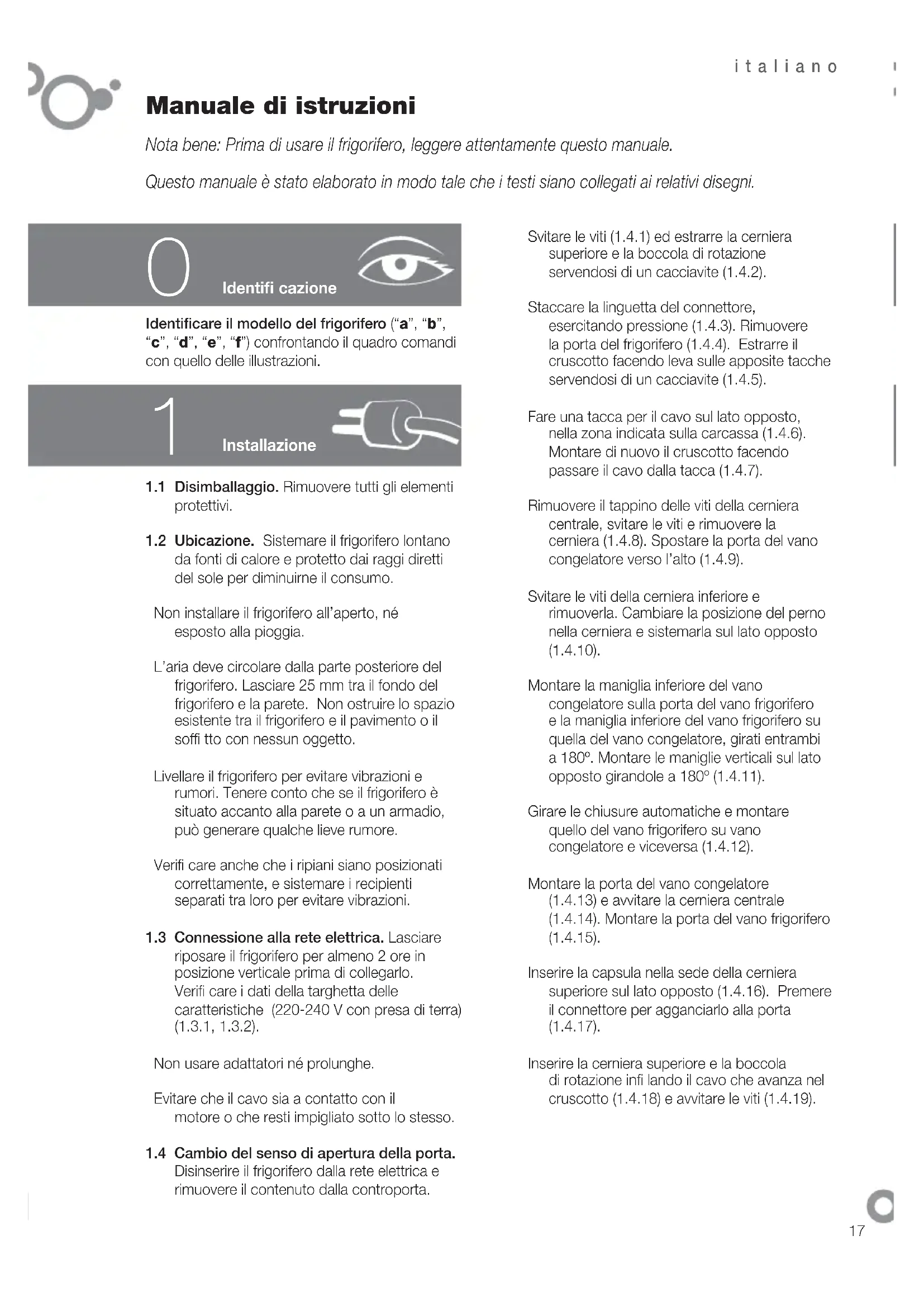 1.4 Cambio del senso di apertura della porta.