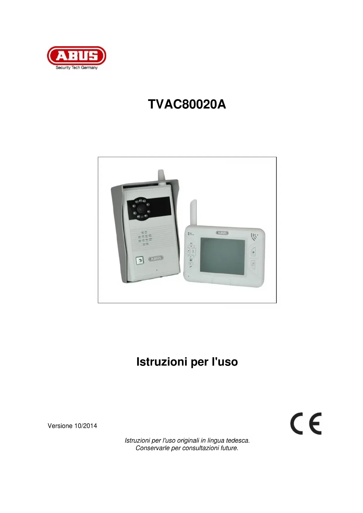 Scarica le istruzioni per il tuo Citofono in formato PDF gratuitamente! Trova il tuo manuale TVAC80020A - ABUS e riprendi in mano il tuo dispositivo elettronico. In questa pagina sono pubblicati tutti i documenti necessari per l'utilizzo del tuo dispositivo. TVAC80020A del marchio ABUS.