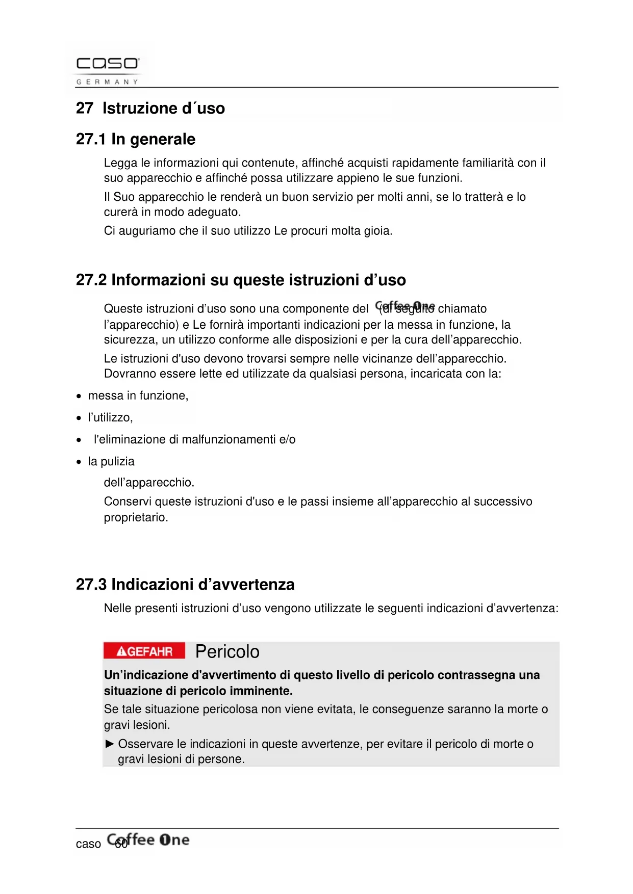 Istruzioni d’uso Originali Coffee Onecaso 60 27 Istruzione d´uso