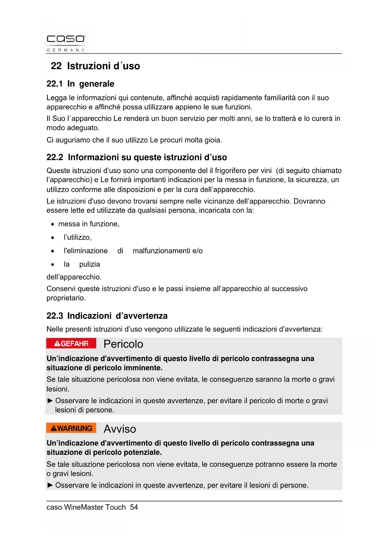 MANUALE UTENTE WineMaster Touch 66 CASO
