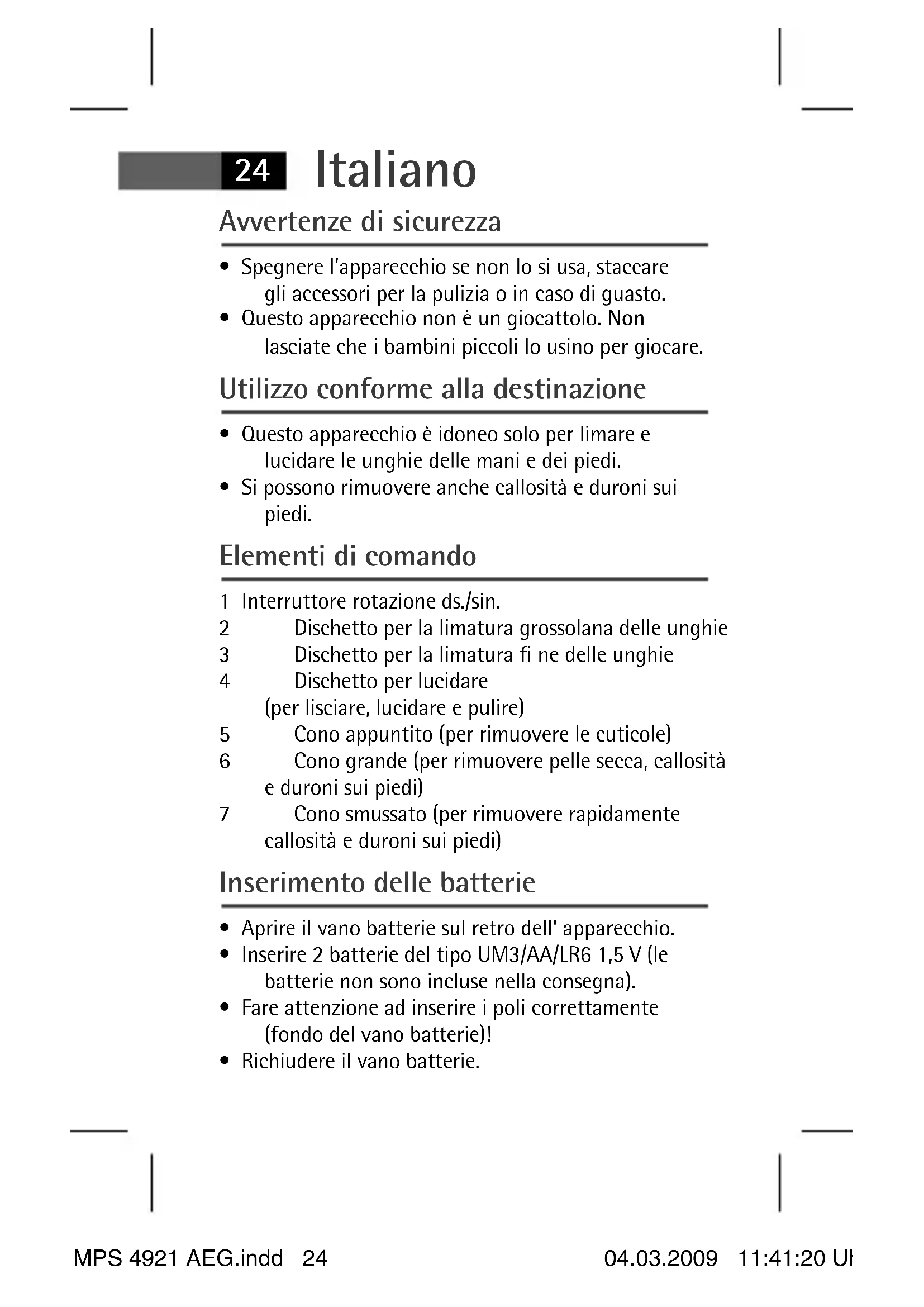 MPS 4921 - Set manicure e pedicure AEG - Manuale utente e istruzioni gratuiti