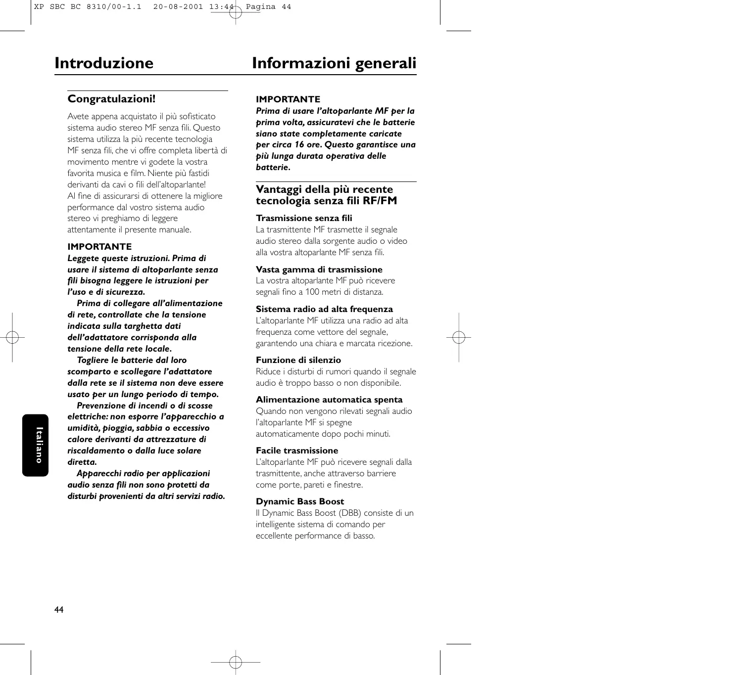 Scarica le istruzioni per il tuo in formato PDF gratuitamente! Trova il tuo manuale SBCBC8310 - PHILIPS e riprendi in mano il tuo dispositivo elettronico. In questa pagina sono pubblicati tutti i documenti necessari per l'utilizzo del tuo dispositivo. SBCBC8310 del marchio PHILIPS.