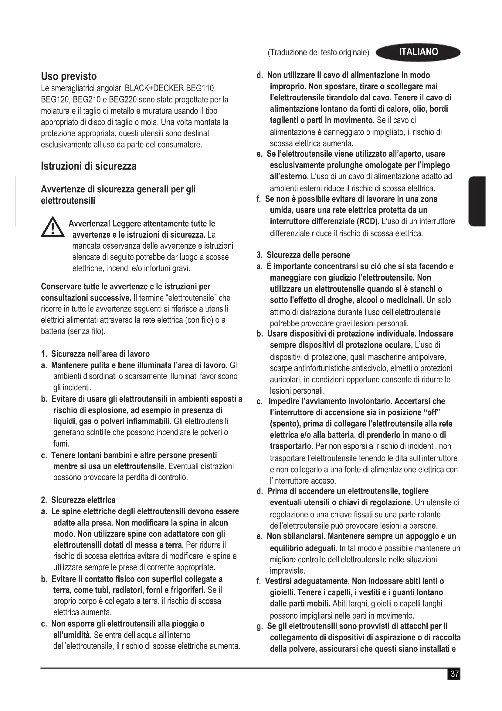 MANUALE UTENTE BEG110 BLACK & DECKER
