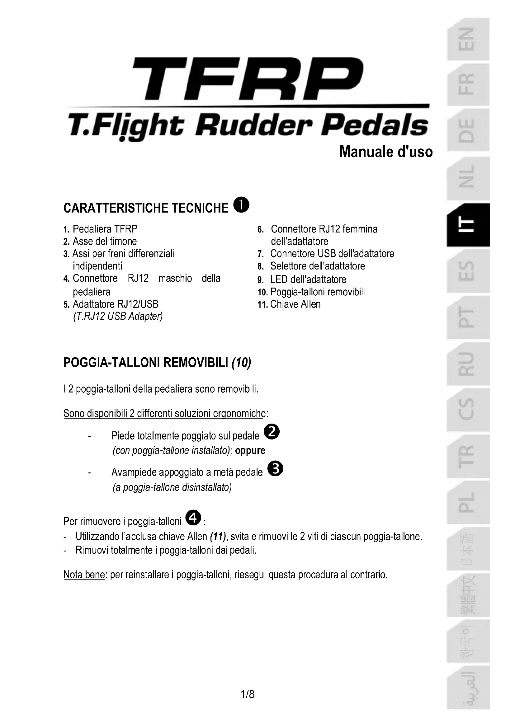 MANUALE UTENTE TFRP TFlight Rudder Pedals THRUSTMASTER