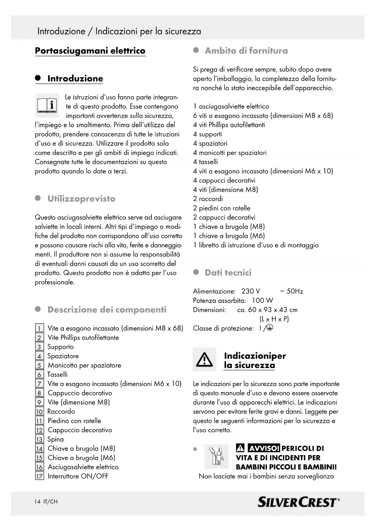 Scarica le istruzioni per il tuo Scaldasalviette elettrico in formato PDF gratuitamente! Trova il tuo manuale Z30399 - SILVERCREST e riprendi in mano il tuo dispositivo elettronico. In questa pagina sono pubblicati tutti i documenti necessari per l'utilizzo del tuo dispositivo. Z30399 del marchio SILVERCREST.