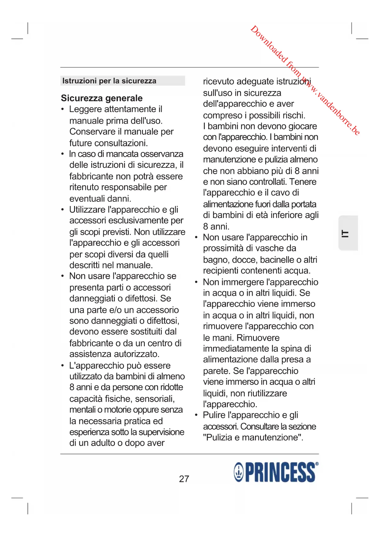 - Se l'apparecchio non viene utilizzato, prima di eseguire operazioni di montaggio o smontaggio e prima di eettuare interventi di pulizia e manutenzione, scollegare sempre la spina dalla rete di alimentazione elettrica. Downloaded from www.vandenborre.be29