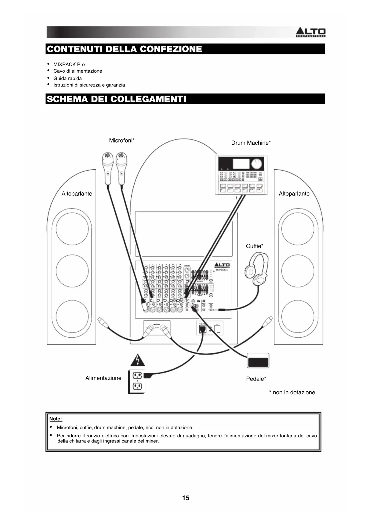Scarica le istruzioni per il tuo Sistema hi-fi in formato PDF gratuitamente! Trova il tuo manuale MixPack Pro - ALTO e riprendi in mano il tuo dispositivo elettronico. In questa pagina sono pubblicati tutti i documenti necessari per l'utilizzo del tuo dispositivo. MixPack Pro del marchio ALTO.