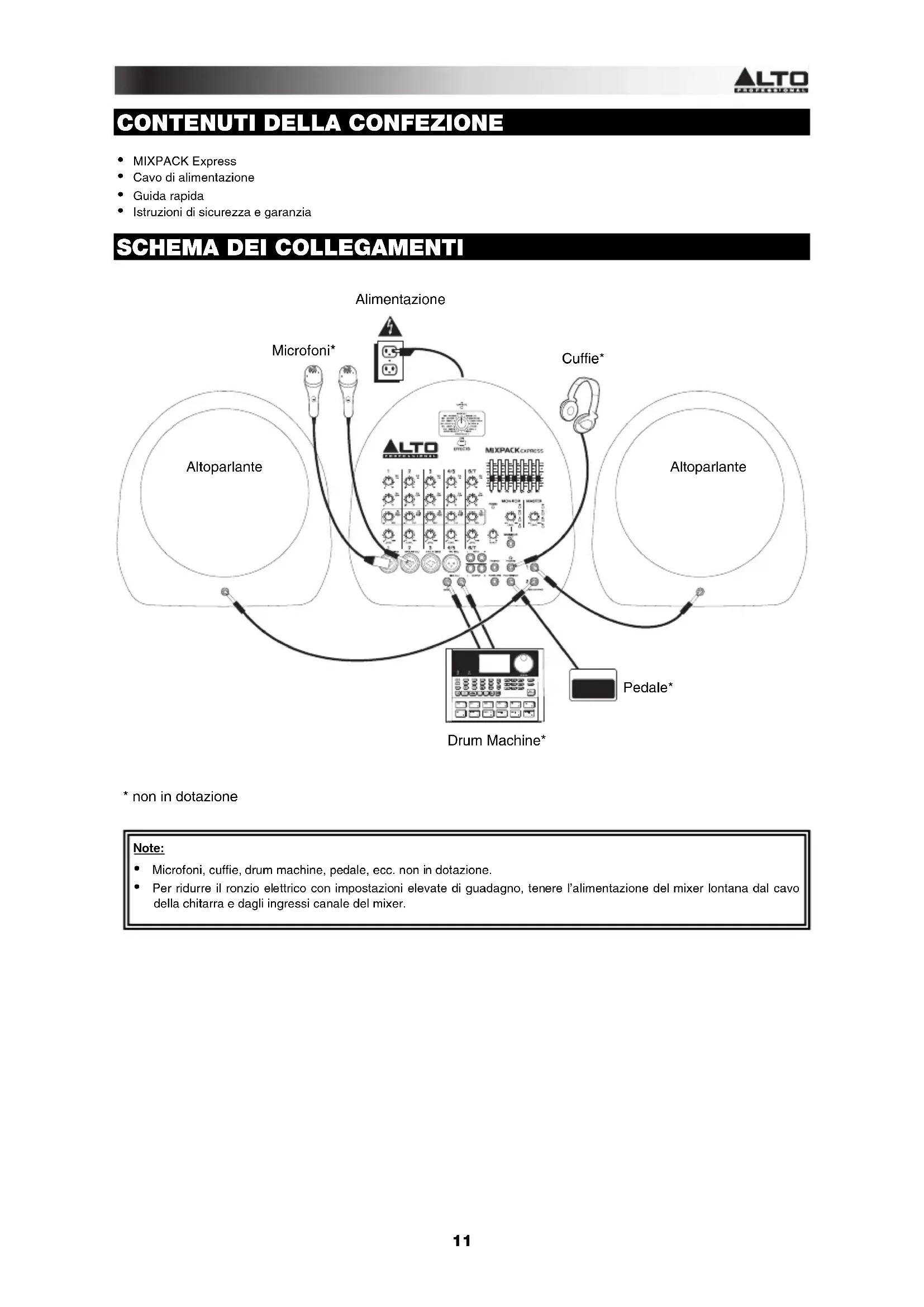 Scarica le istruzioni per il tuo Sistema hi-fi in formato PDF gratuitamente! Trova il tuo manuale Mixpack Express - ALTO e riprendi in mano il tuo dispositivo elettronico. In questa pagina sono pubblicati tutti i documenti necessari per l'utilizzo del tuo dispositivo. Mixpack Express del marchio ALTO.