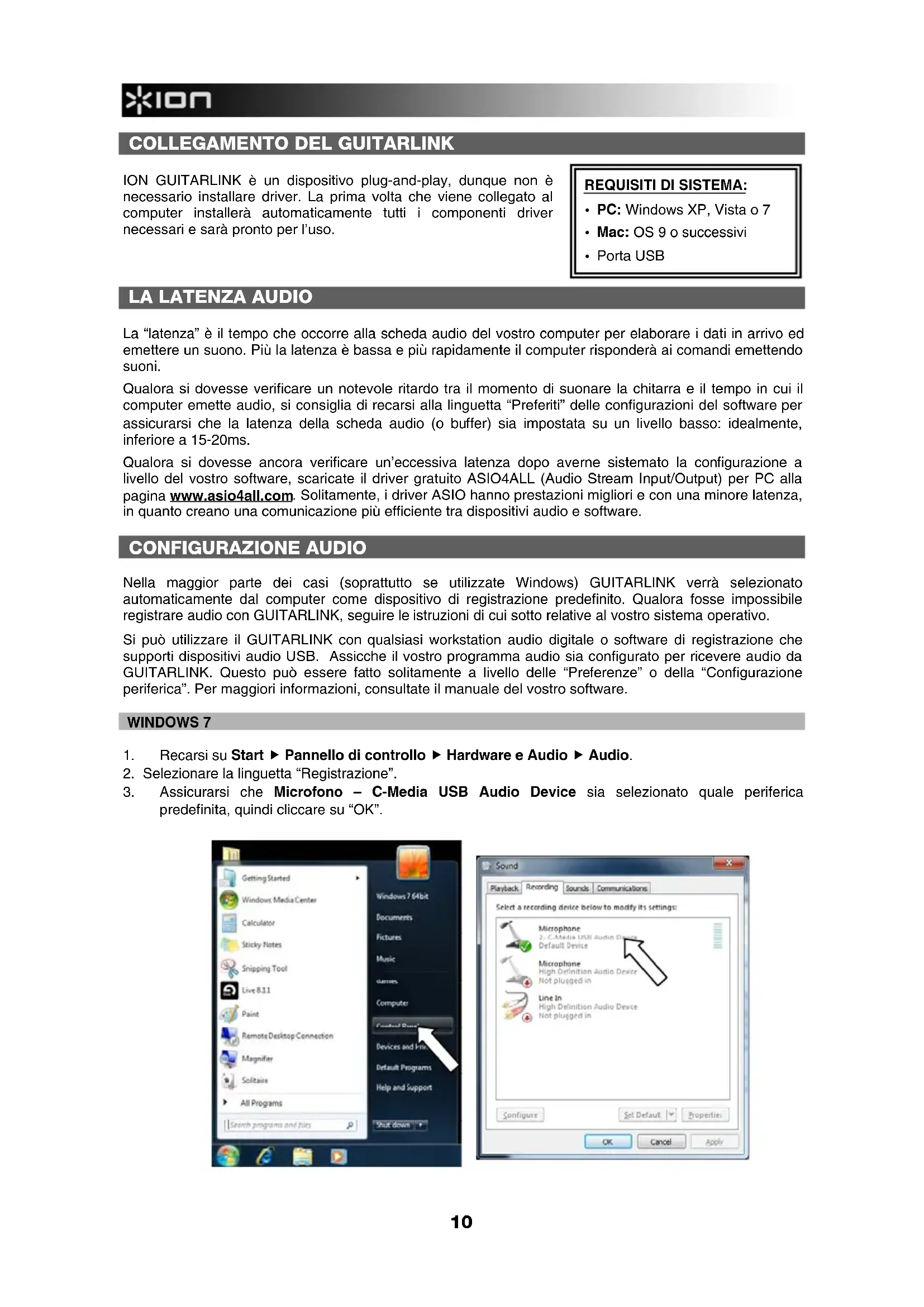 GuitarLink - Sistema hi-fi ION - Manuale utente e istruzioni gratuiti