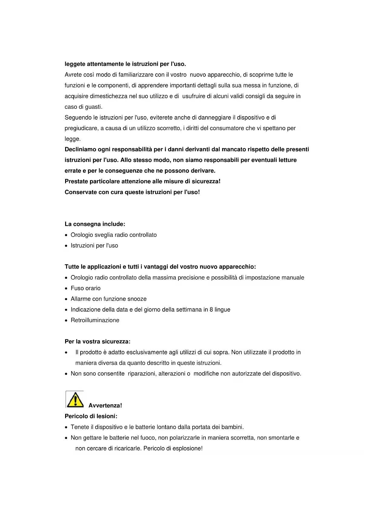 Le batterie contengono acidi nocivi per la salute. Sostituire quanto prima le batterie quasi scariche, in modo da evitare che si scarichino completeness.