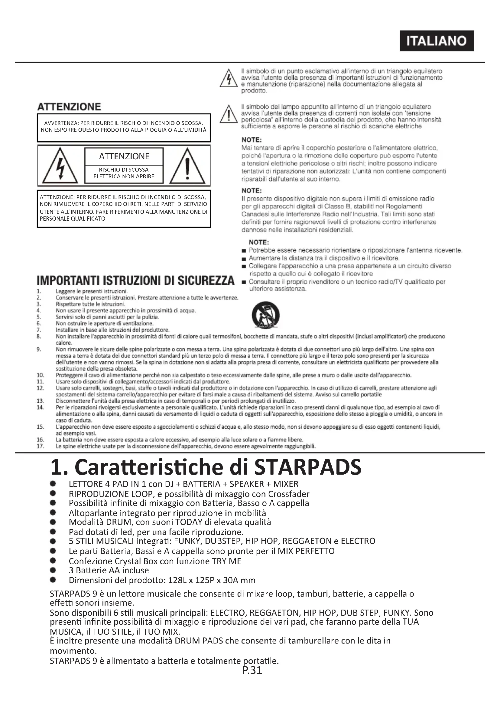 Star Pads 9 - Strumento musicale elettronico iDance - Manuale utente e istruzioni gratuiti