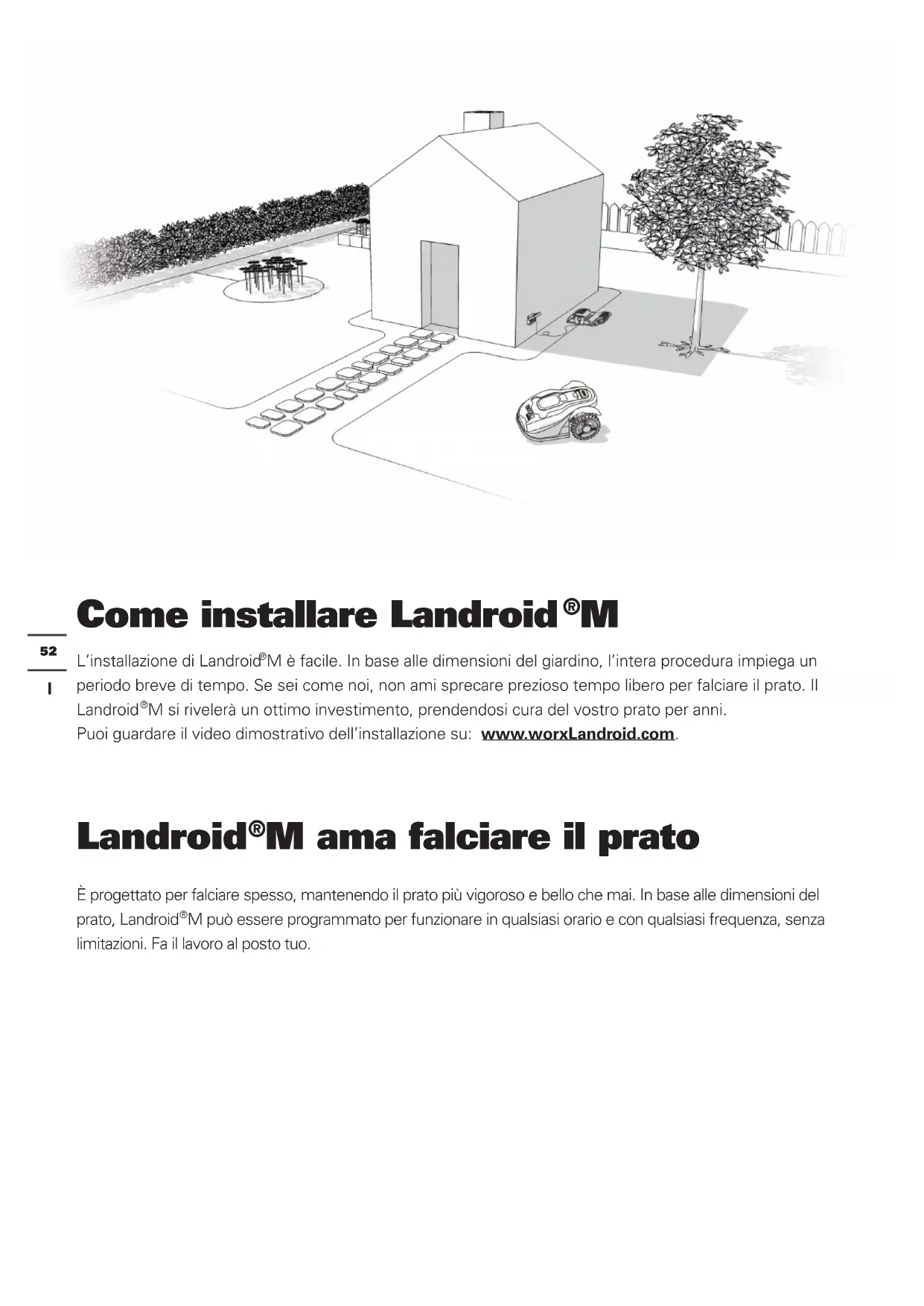 M si rivelerà un ottimo investimento, prendendosi cura del vostro prato per anni. Puoi guardare il video dimostrativo dell’installazione su: www.worxLandroid.com. Landroid