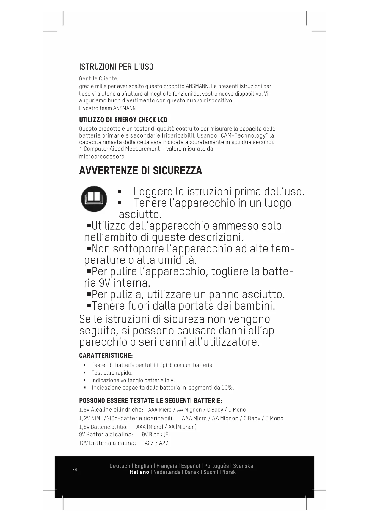 MANUALE UTENTE Energy Check LCD ANSMANN