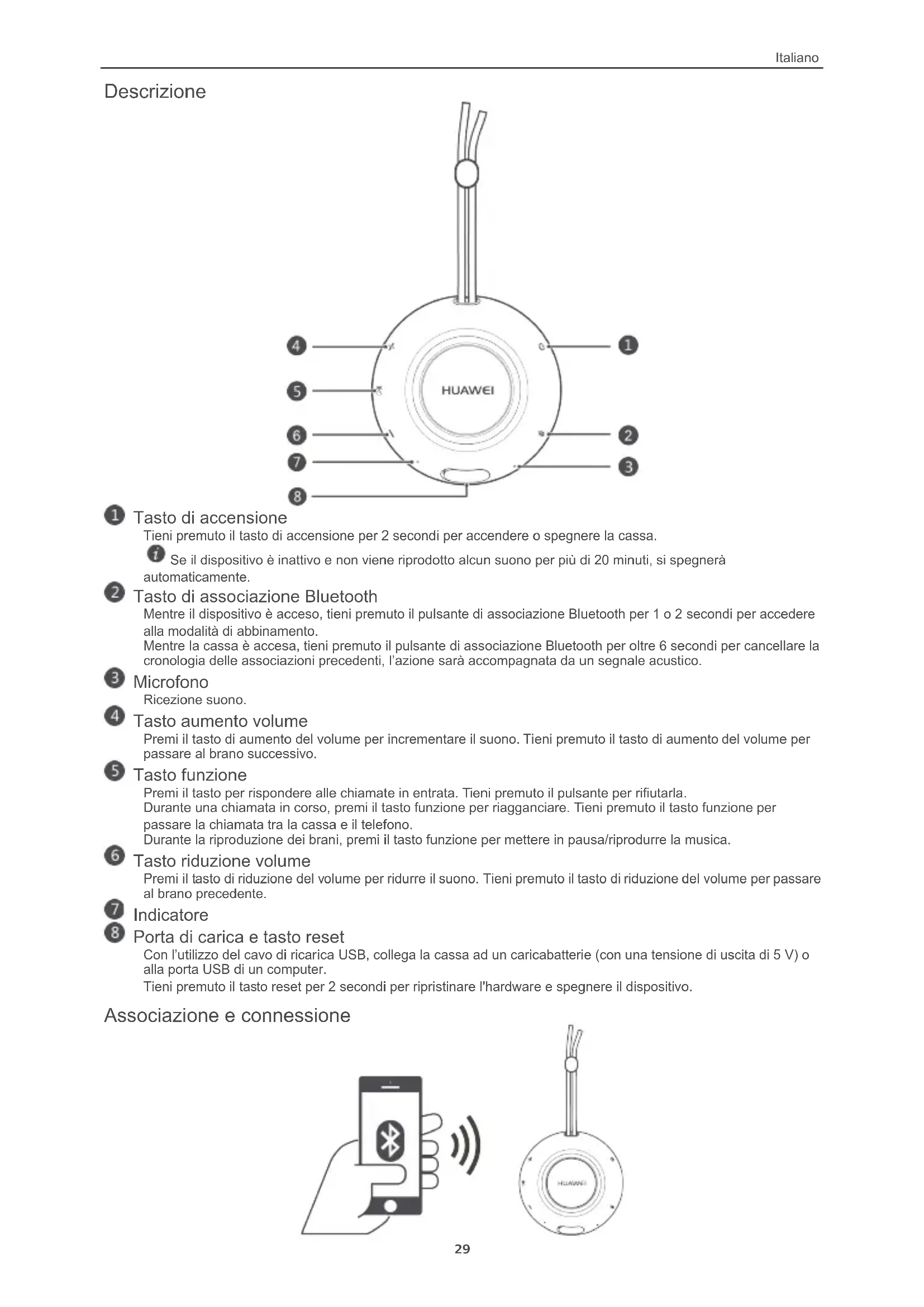Scarica le istruzioni per il tuo Altoparlante in formato PDF gratuitamente! Trova il tuo manuale SoundStone - HUAWEI e riprendi in mano il tuo dispositivo elettronico. In questa pagina sono pubblicati tutti i documenti necessari per l'utilizzo del tuo dispositivo. SoundStone del marchio HUAWEI.
