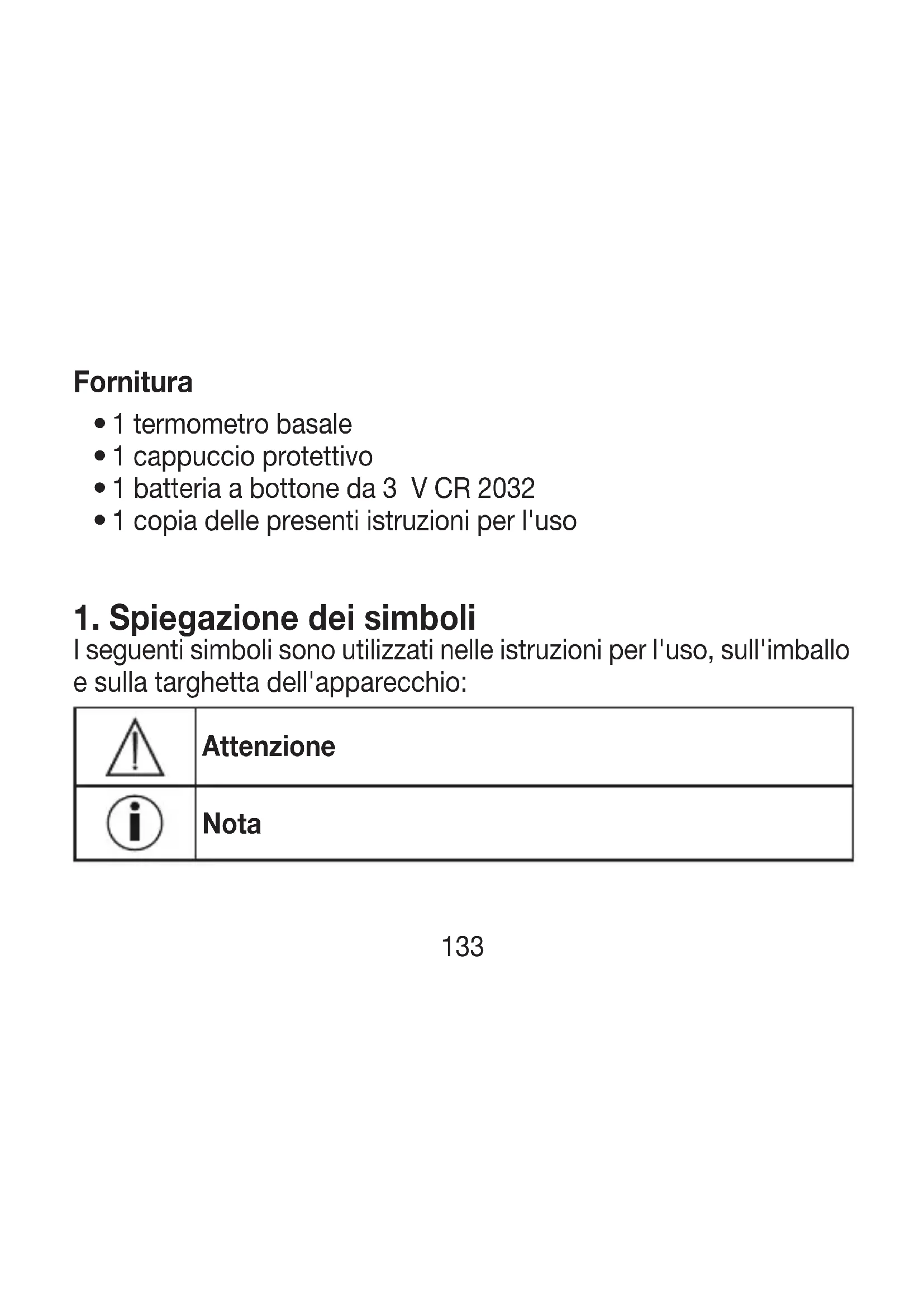L'apparecchio è conforme ai requisiti della direttiva europea per i dispositivi medici 93/42/CEE, alla legge sui dispositivi medici, alla norma europea EN 12470-3: Termometri clinici - Parte 3: termome- tri elettrici compatti (a comparazione ed estrapolazione) aventi un dispositivo di massimo e alla norma europea EN 60601-1-2 (con- formità con IEC 61000-4-2, IEC 61000-4-8) e necessita di pre- cauzioni d'impiego particolari per quanto riguarda la compatibilità elettromagnetica. L'apparecchio è idoneo per l'utilizzo in qualsiasi ambiente riportato nelle presenti istruzioni per l'uso, incluso l'am-140 biente domestico. Apparecchiature di comunicazione HF mobili e portatili possono influire sul funzionamento di questo apparecchio. Avvertenze sull'uso delle batterie