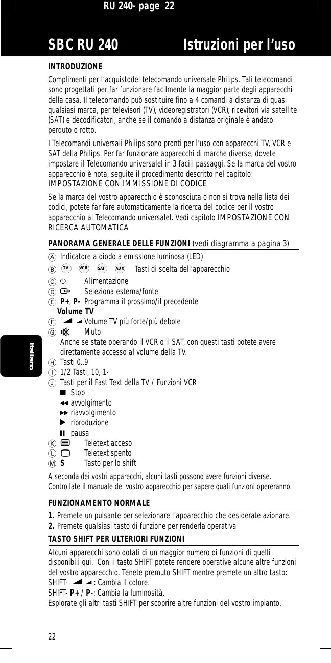 SBCRU240 - Telecomando PHILIPS - Manuale utente e istruzioni gratuiti