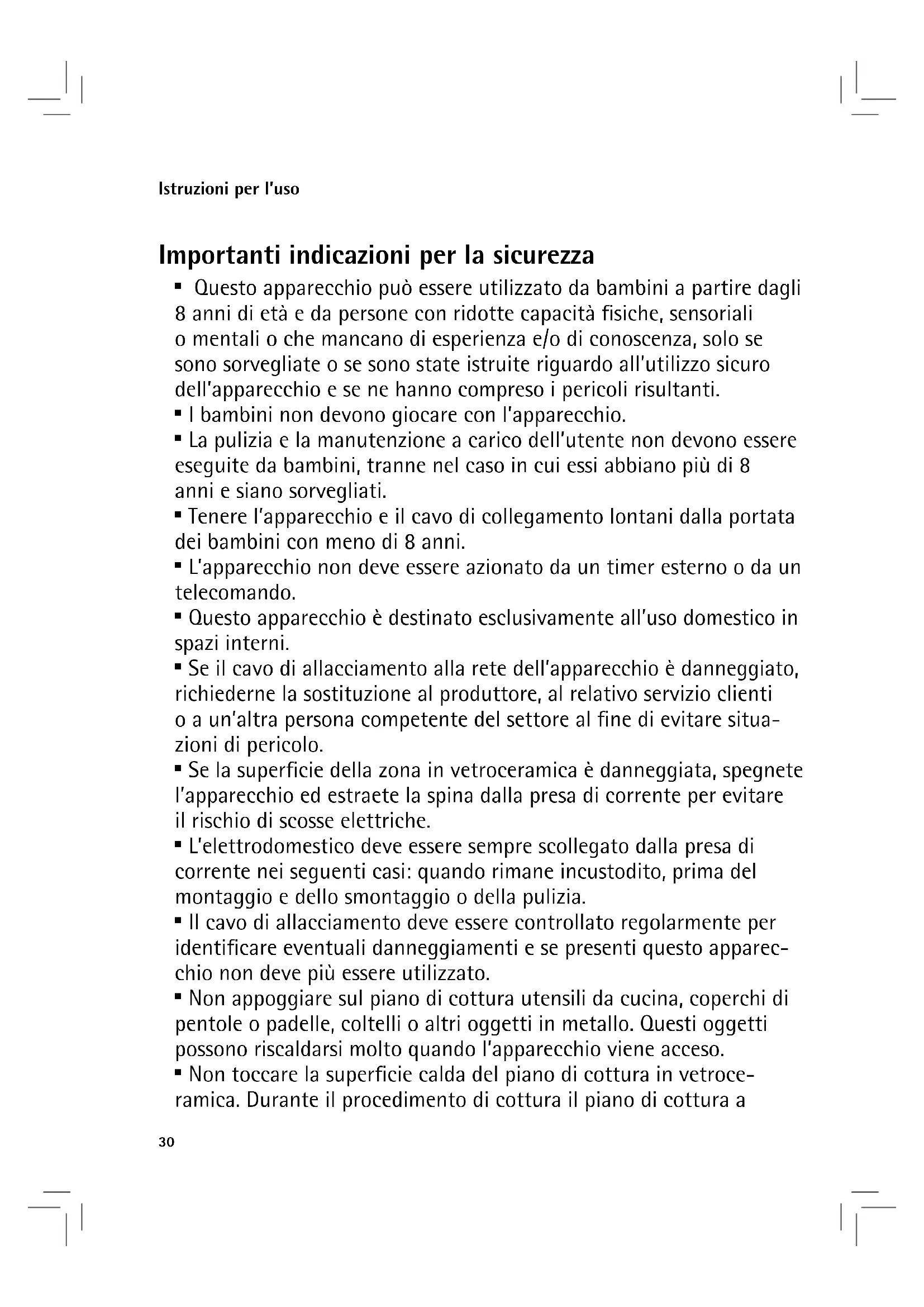 - La pulizia e la manutenzione a carico dell’utente non devono essere eseguite da bambini, tranne nel caso in cui essi abbiano più di 8 anni e siano sorvegliati.