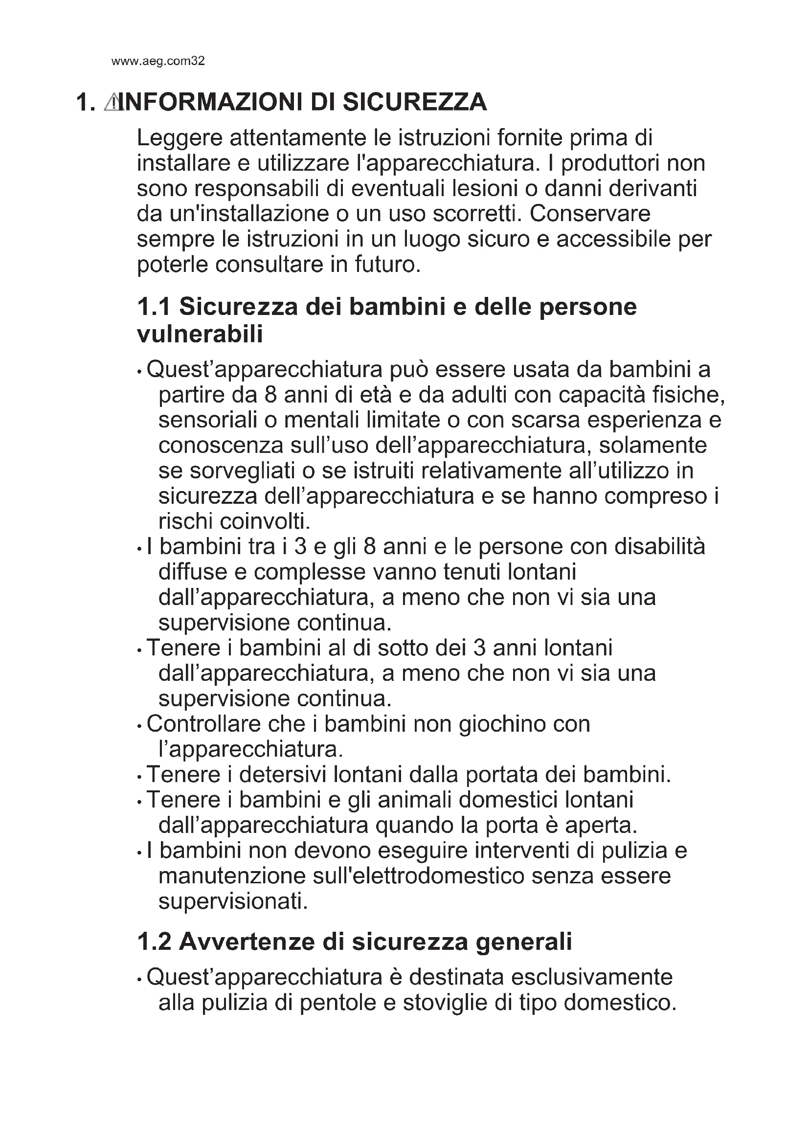 - Quest’apparecchiatura è destinata esclusivamente alla pulizia di pentole e stoviglie di tipo domestico. www.aeg.com32• Quest’apparecchiatura è progettata per un uso domestico singolo in un ambiente interno.