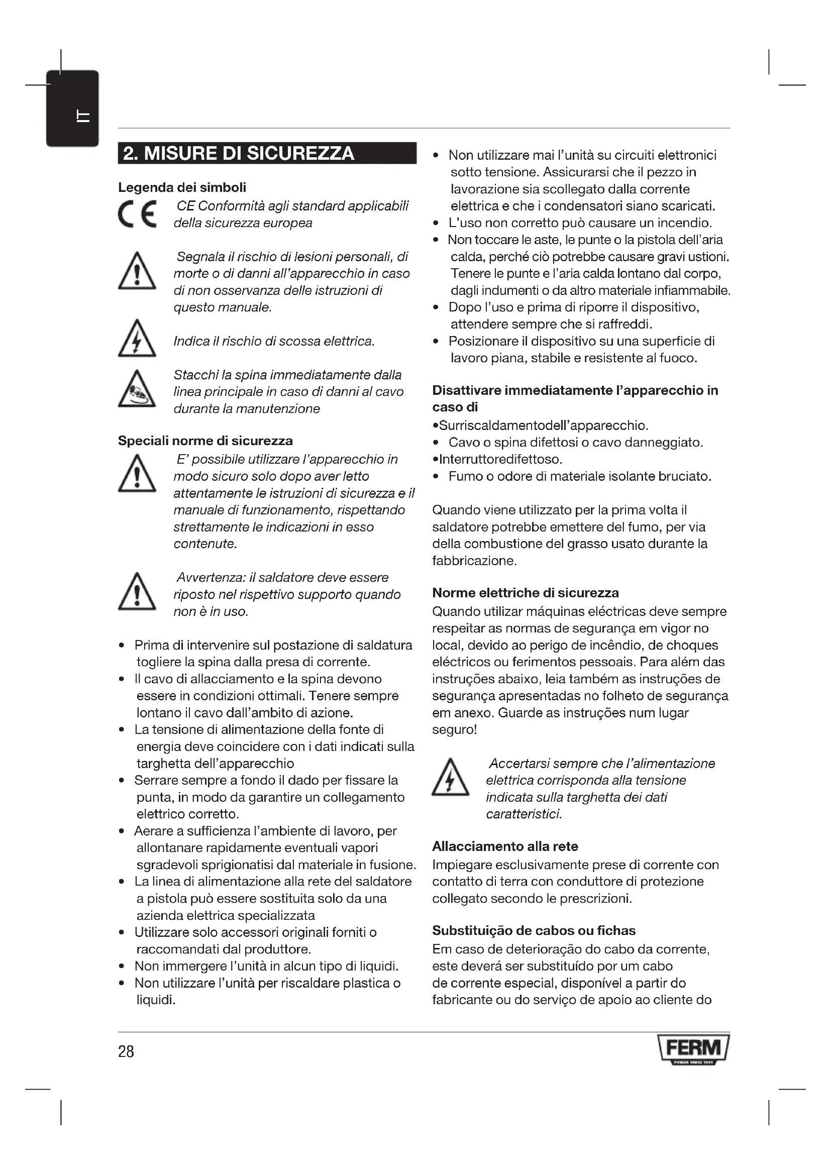 - Prima di intervenire sul postazione di saldatura togliere la spina dalla presa di corrente.