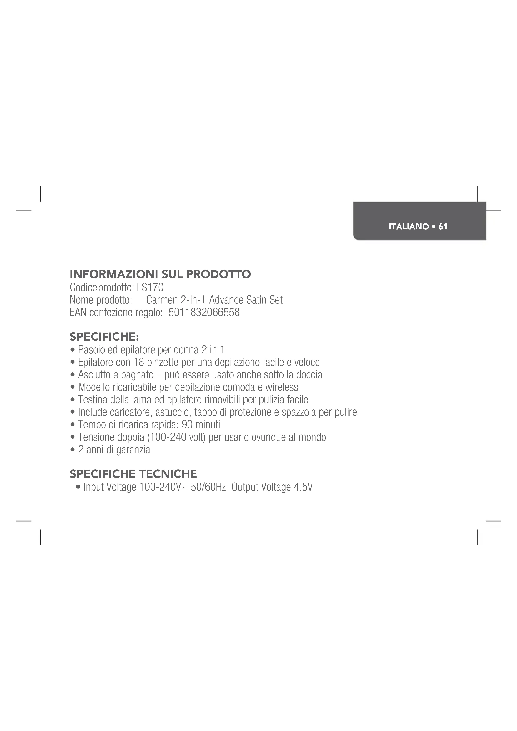 LS170 - Rasoio Carmen - Manuale utente e istruzioni gratuiti